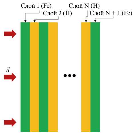 Как было указано ранее, использование гетерогенной, многослойной радиационной защиты является одним из действенных способов для снижения мощности дозы. Это напрямую связано с пространственно-энергетическим распределением нейтронов. Применение классического подхода с использованием чередующихся слоев с большой концентрацией ядер водорода и бора в направлении перпендикулярном распространению пучка имеет ряд ограничений. При прохождении 1-го слоя подобной защиты энергетическое и пространственное распределение может значительно измениться. Это означает, что первый слой теперь является источником со своим характеристиками и именно под него следует оптимизировать следующий слой (см. рис. 1).
