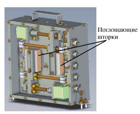 Была подготовлена расчетная модель и выполнено моделирование для 3-х вариантов поглощающих шторок: ПБ10 с плотностью 1.05 г/см3 и толщиной 20 мм; керамический карбид бора толщиной 1 мм; ABS-пластик с нитридом бора с плотностью 1.15 г/см3 и толщиной 2 мм. Общий вид расчетной модели представлен на рис. 8.