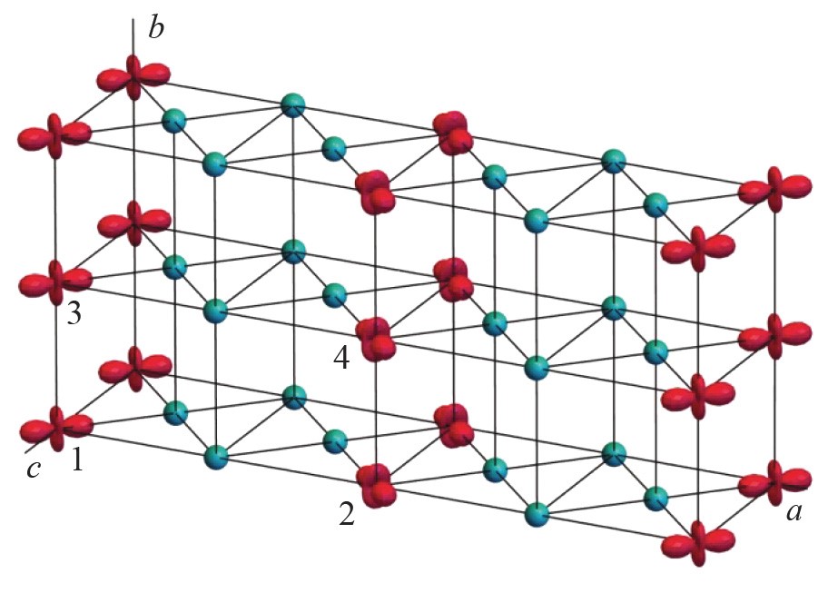 Ионы Mn3+ в позиции 2c соответствуют подрешеткам 1 и 3 на рис. 1, в позиции 2d –подрешеткам 2 и 4.