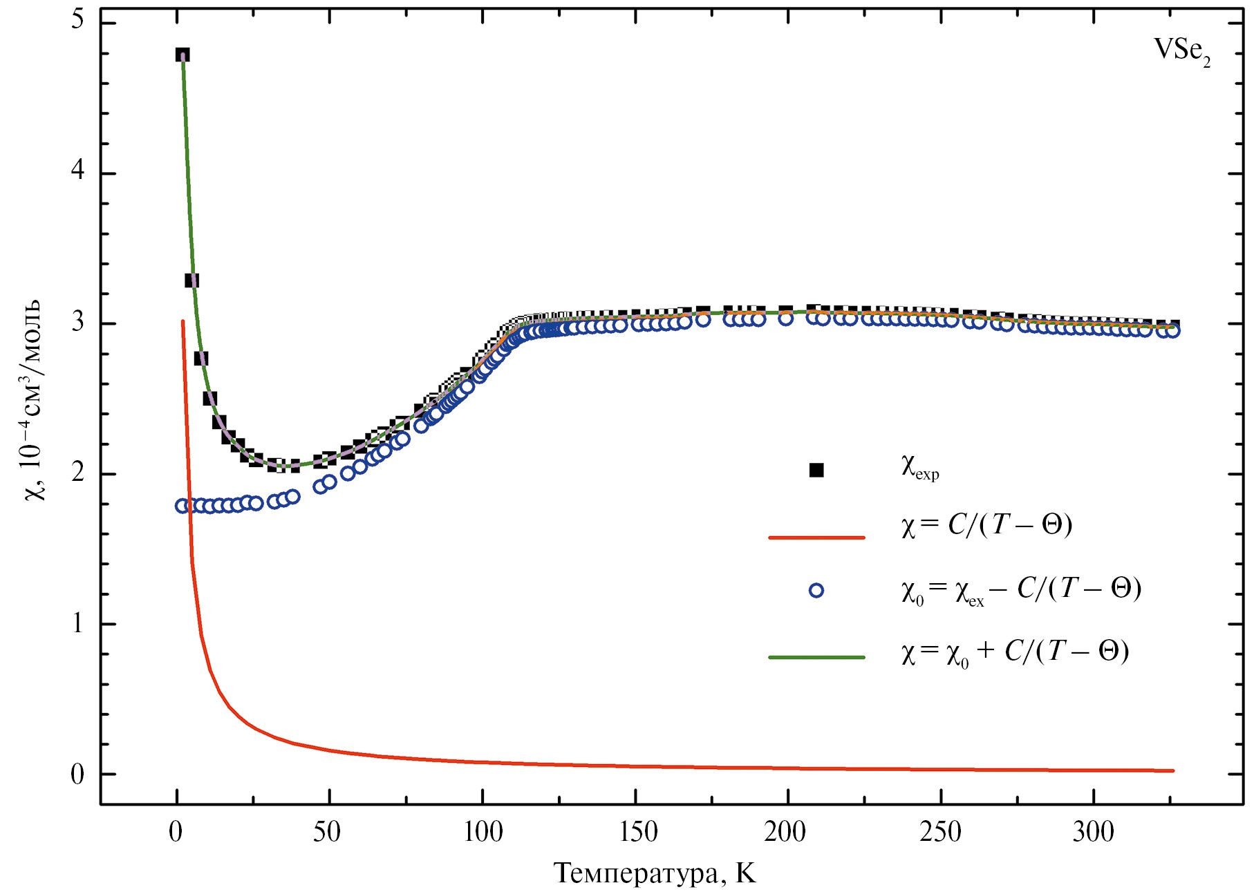 где C – постоянная Кюри, c0 – независимая от температуры восприимчивость слоев VSe2.