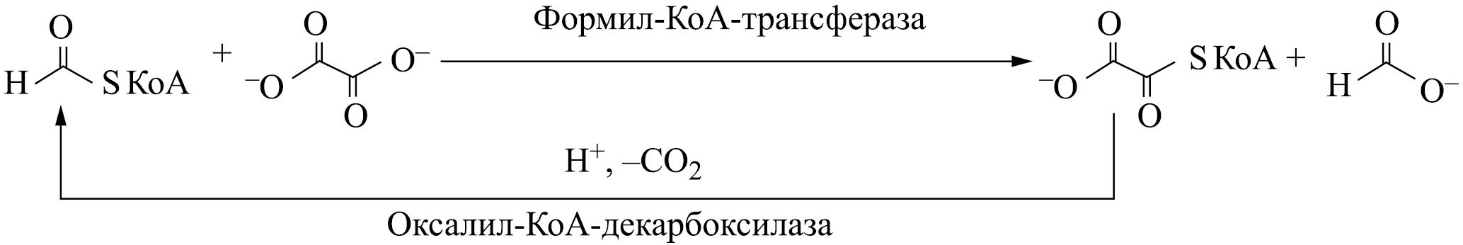 У растений деструкция оксалата ацетилированием происходит с участием четырех ферментов. Первоначально оксалил-КоА-синтетазой оксалат превращается в оксалил-КоА: