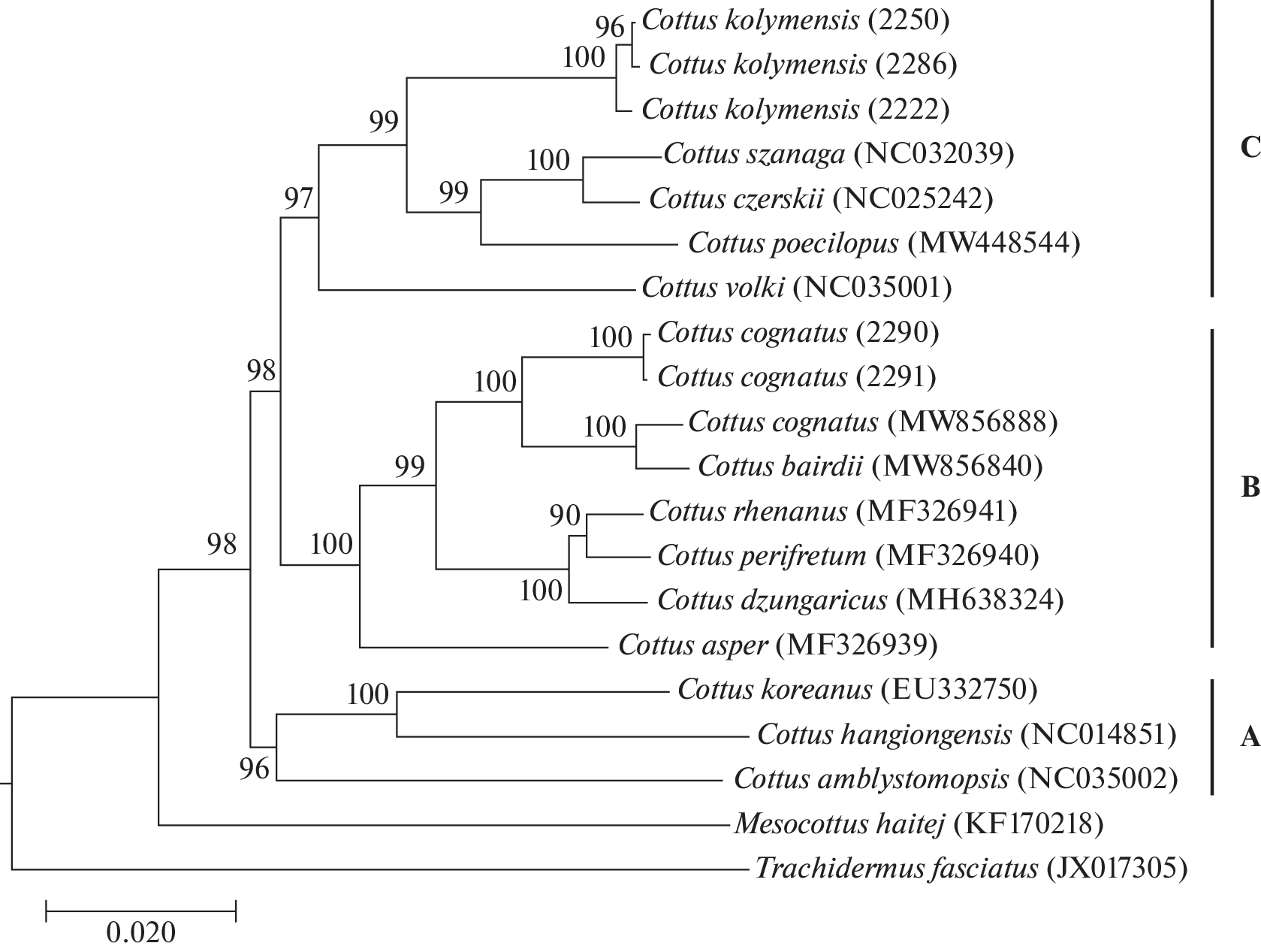 9. Radchenko O.A., Moreva I.N., Petrovskaya A.V. The subfamily Myoxocephalinae of cottid fishes (Cottidae): Genetic divergence and phylogenetic relationships // J. Fish Biol. 2021. V. 99. P. 1857–1868. https://doi.org/10.1111/jfb.14886