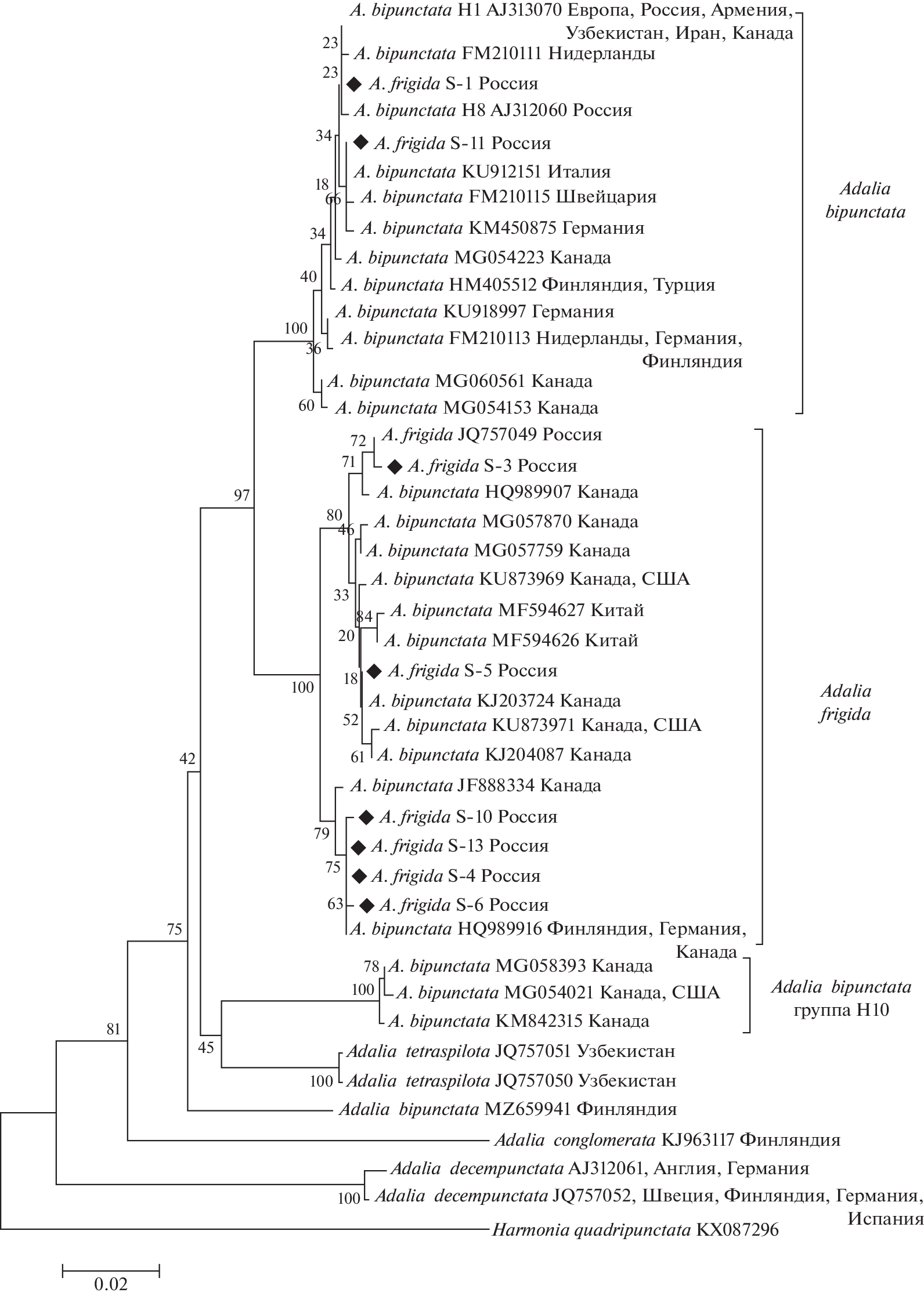 - Zakharov I.A., Shaikevich E.V. Comparative study of mtDNA in species of the genus Adalia (Coleoptera: Coccinellidae) and origin of ancient mitochondrial haplotypes in the gene pool of Adalia bipunctata // Eur. J. Entomol. 2013. V. 110. № 3. P. 427–433. https://doi.org/10.14411/eje.2013.057