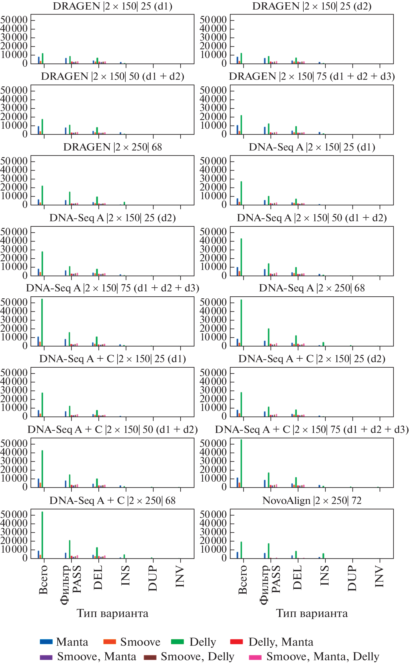 - Rausch T., Zichner T., Schlattl A. et al. DELLY: structural variant discovery by integrated paired-end and split-read analysis // Bioinformatics. 2012. V. 28. № 18. P. i333–i339. https://doi.org/10.1093/bioinformatics/bts378
