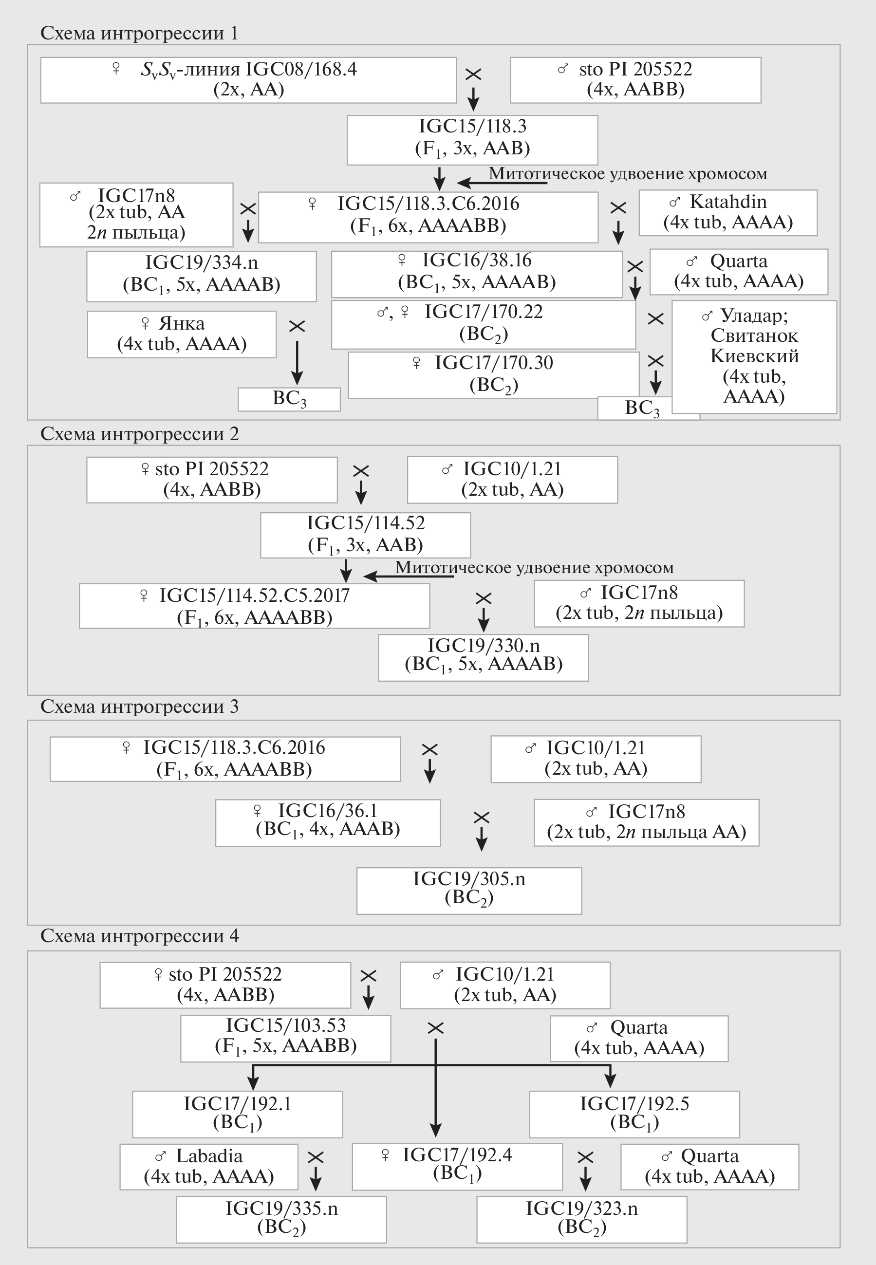 - Sanetomo R., Ono S., Hosaka K. Characterization of crossability in the crosses between Solanum demissum and S. tuberosum, and the F1 and BC1 progenies // Am. J. Potato Res. 2011. V. 88. P. 500–510. https://doi.org/10.1007/s12230-011-9217-0