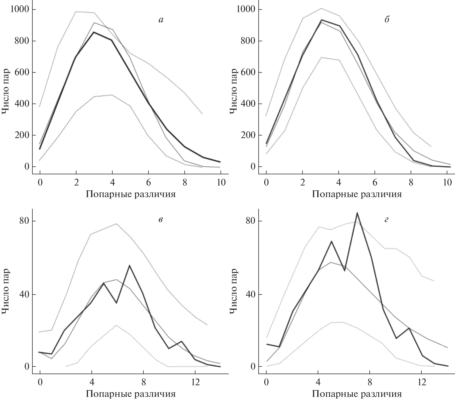 - Rogers A.R., Harpending H. Population growth makes waves in the distribution of pair–wise genetic differences // Mol. Biol. Evol. 1992. V. 9. № 3. P. 552–569.