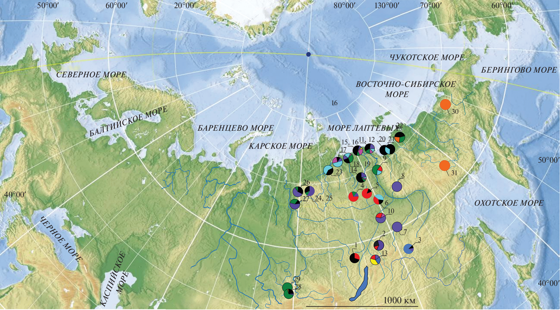Представлены результаты морфологического и генетического анализа популяций/форм/видов пыжьяновидных сигов из среднего и нижнего течения р. Лены и сопредельных рек. Есть основания полагать, что несмотря на значительную неоднородность сига в Сибири в водоемах сибирского Заполярья обитает небольшое число устойчивых форм/видов. Это восточносибирский (C. lavaretus pidschian n. brachymystax), ледниково-равнинный (C. lavaretus pidschian n. glacialis) и юкагирский сиг (C. lavaretus pidschian n. jucagiricus), а также их гибридные популяции. Ледниково-равнинный сиг и его производные отличаются от восточносибирского сига по пластическим признакам, но по меристическим они идентичны. Молекулярно-генетические исследования показали, что в большинстве ледниково-равнинный сиг формирует обширные слабосвязанные сети гаплотипов, что соответствует длительному существованию популяций в благоприятных условиях. Гаплотипы восточносибирского сига тесно связаны с гаплотипами форм/видов сигов из водоемов Южной Сибири и имеющих радиальную структуру медианной сети. Подобная структура сетей свидетельствует о недавнем сокращении численности восточносибирского сига с последующей экспансией, что напрямую связанно с событиями четвертичных оледенений.