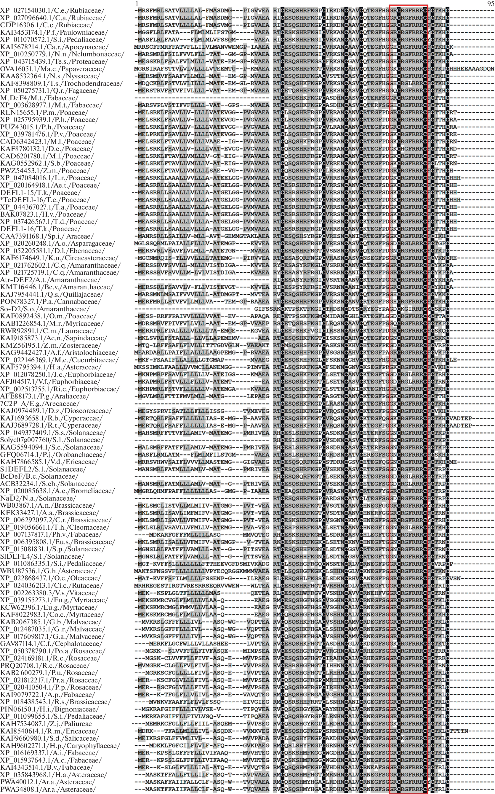 - Stotz H.U., Spence B., Wang Y. A defensin from tomato with dual function in defense and development // Plant Mol. Biol. 2009. V. 71. № 1−2. P. 131–143. https://doi.org/10.1007/s11103-009-9512-z