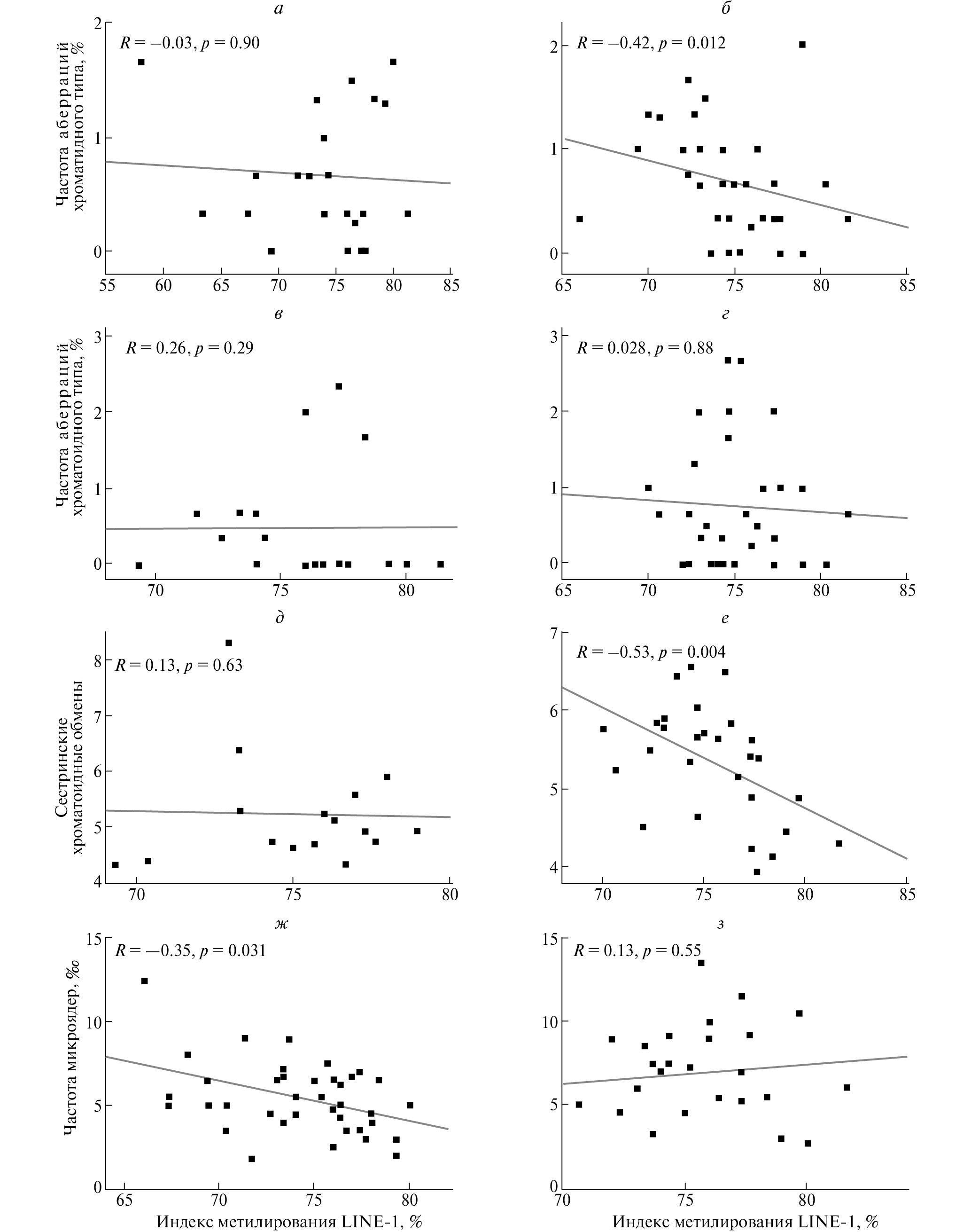 - Li H., Hilmarsen H.T., Hossain M.B. et al. Telomere length and LINE-1 methylation is associated with chromosomal aberrations in peripheral blood // Genes Chrom. Cancer. 2013. V. 52. № 1. P. 1–10. https://doi.org/10.1002/gcc.22000