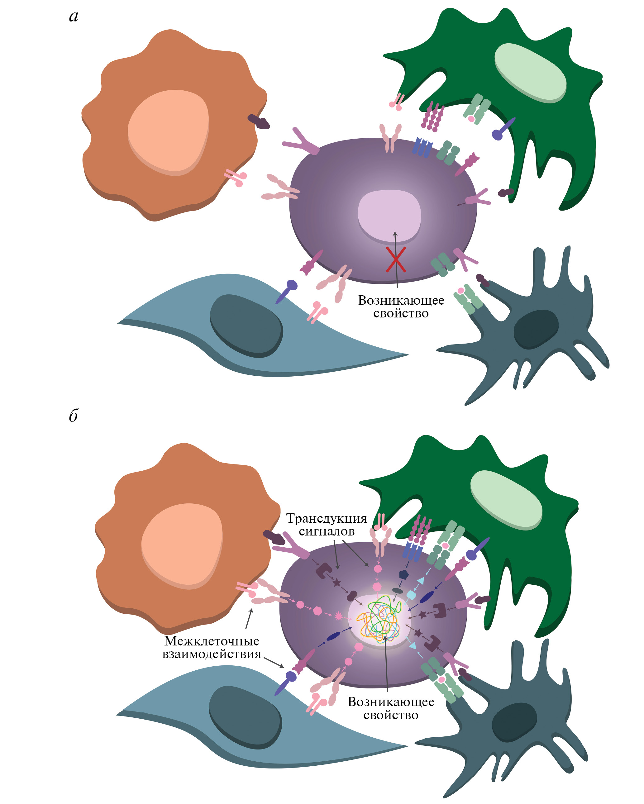 Вместе с многоклеточностью неизбежно появился эффект возникающих в результате межклеточных взаимодействий (“emergent”, эмерджентных) свойств. Они образуются всегда при взаимодействиях как молекул, так и клеток. Идея эмерджентных свойств давно дискуссируется в философии и эволюционной биологии. Ей посвящены сотни публикаций и множество несогласующихся трактовок [15].