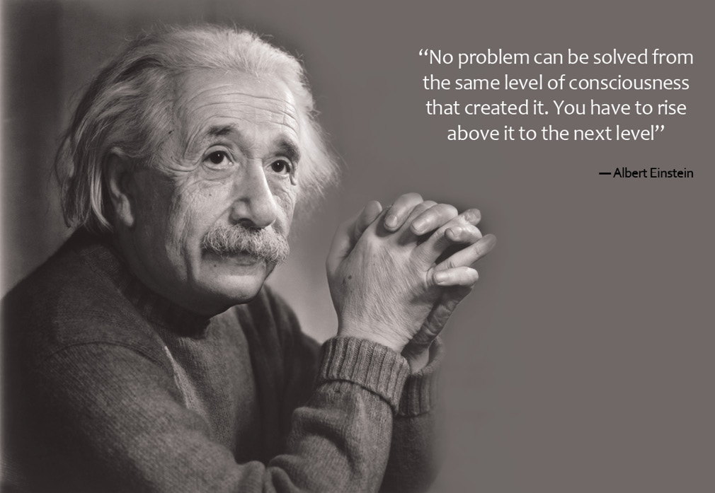 - Einstein A. No problem can be solved from the same level of consciousness that created it. https://www.azquotes.com/quote/87303 (accessed on 10-02-2024)