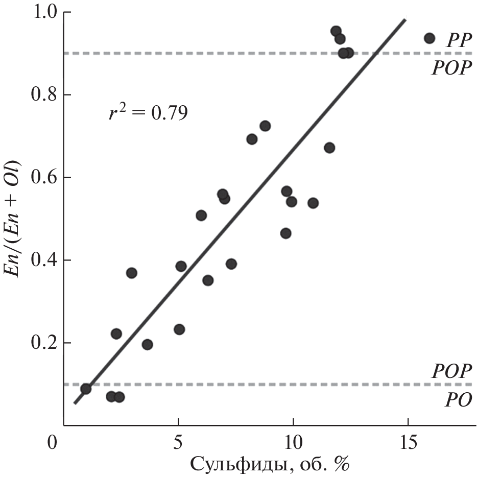 Рассмотрено влияние сульфидной серы на кристаллизационную дифференциацию ультраосновных-основных-средних магматических систем с целью оценить его масштабы и направленность при кристаллизации породообразующих фаз. В рамках исследования проведен теоретический анализ влияния серы на активности компонентов силикатного расплава согласно принципу кислотно-оснóвного взаимодействия Коржинского. Для проверки теоретических построений был проведен систематический поиск опубликованных экспериментальных данных допускающих прямое сопоставление серонасыщенных и свободных от серы опытов. Несмотря на очень ограниченное количество таких экспериментов, все они хорошо укладываются в теоретически предсказанные тренды. Установлено, что добавление в систему серы умеренно снижает температуру ликвидуса породообразующих минералов в пределах 20–30°С, и значимо влияет на их состав. В случае хромшпинелида происходит его обогащение хромом на 10–12 мол. % и комплементарное обеднение алюминием. Состав плагиоклаза обогащается анортитовой компонентой: 3 мол. % в дацитах, 8 мол. % в андезитах, в базальтах этот эффект установить не удалось, но можно ожидать его усиления. Оливин и ортопироксен претерпевают незначительное увеличение магнезиальности, но в пользу ортопироксена существенно сокращается поле их совместного сосуществования, что неизбежно должно повлечь изменение их котектических и перитектических пропорций. Для ряда природных объектов из публикаций почерпнуты наблюдения, которые можно интерпретировать как результат проявления влияния серы. Полученные результаты приводят к выводу, что влияние серы на кристаллизацию силикатных магм значимо. А это, как минимум, требует большой осторожности при использовании для серосодержащих систем петрологических зависимостей, калиброванных на свободных от серы экспериментах.