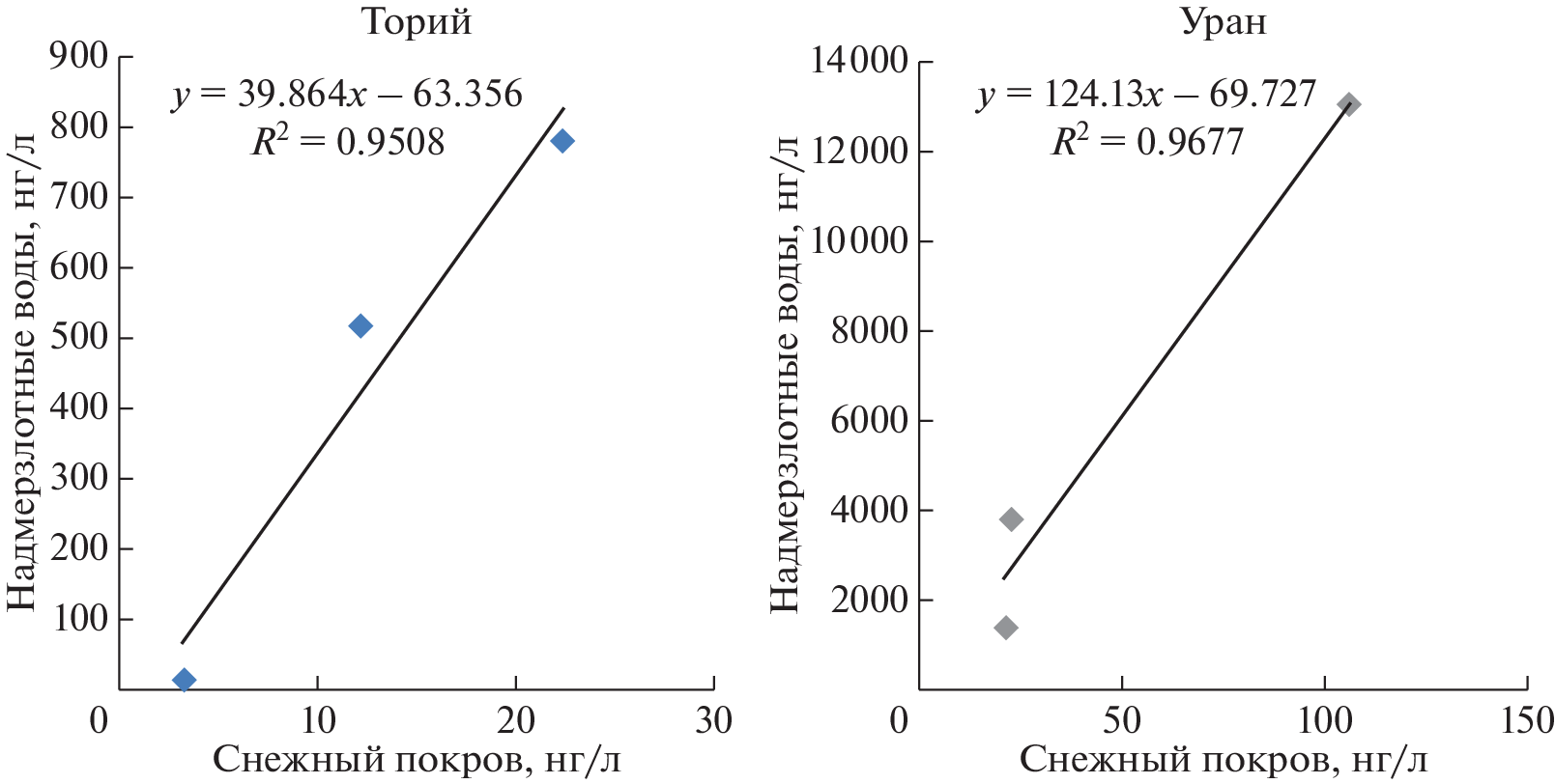 The distribution of Th and U was studied in the near-ground atmosphere of the city of Yakutsk. The chemical compositions of particulate matter (PM) in the summer atmosphere and in the solid and soluble phases of the snowpack were studied in 2019–2020. In the summer atmosphere, Th and U are concentrated mostly in the dust fraction of PM, together with a group of siderophile elements. The wintertime PM is characterized by a more homogeneous size of its particles. PM minerals with which concentrations of actinides correlate are amphiboles and pyroxene for Th and carbonates for U. The Th and U concentrations were found out to systematically decrease in the sequence soil–summer PM (dust)–winter PM (snow), at the dominance of Th, but the aqueous phase of the snow contains U concentrations one order of magnitude higher than those of Th. The bulk (close to 90%) of actinides is deposited during the warm season. The total amount of actinides falling out in Yakutsk is 63 mg/(m2 year), with two-thirds of this amount being Th. This value may locally increase to 200 mg/(m2 year) and more in areas of contrasting anomalies, with the predominance of Th. The main sources of actinides entering the near-ground atmosphere of Yakutsk are dusting from the soil surface and emissions from vehicles, with lesser amounts coming from energy-producing and construction-industry facilities.