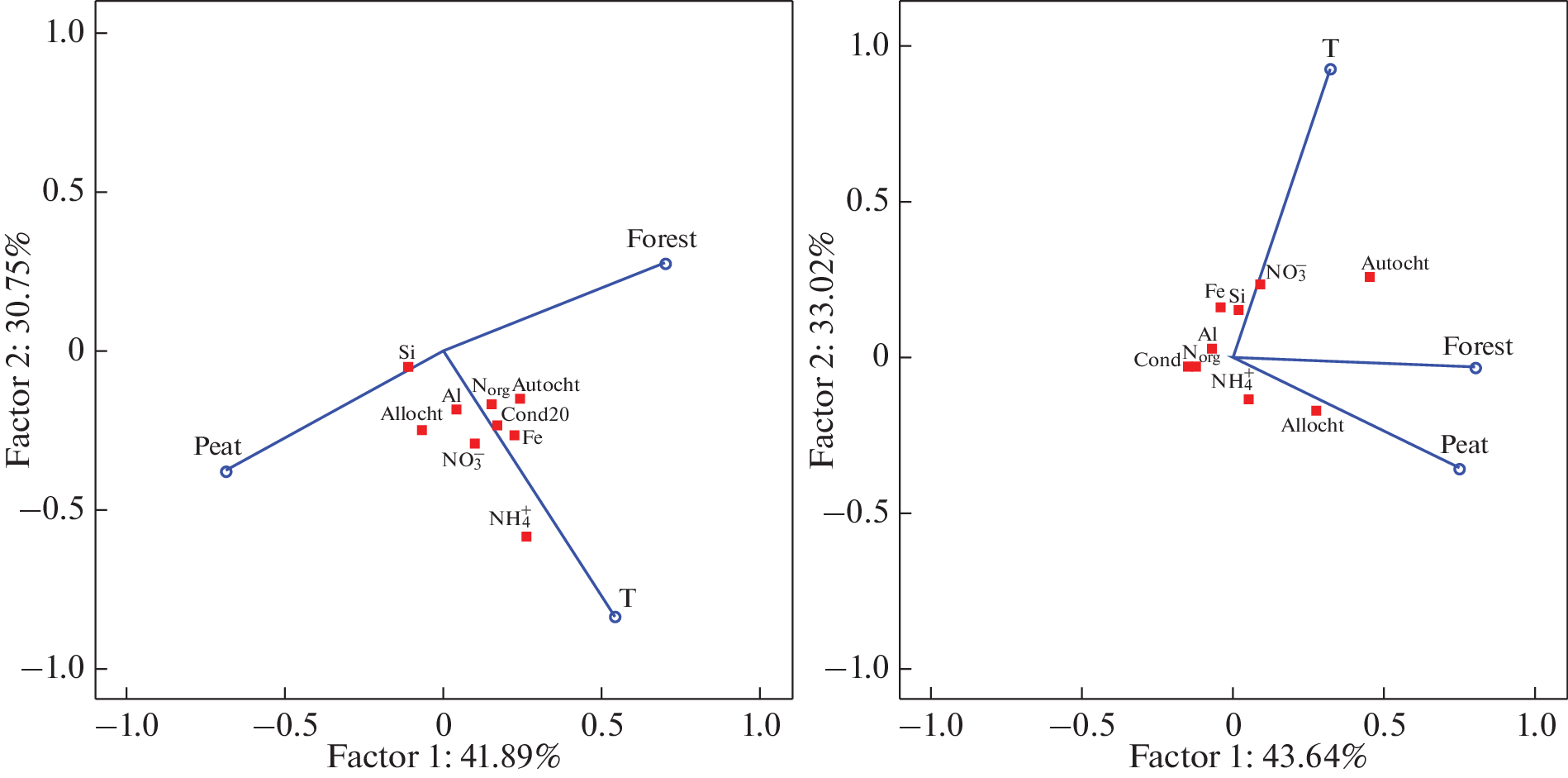The paper discusses the distribution and origin of organic matter in natural waters with regard to the latitudinal geographic zoning in the European territory of Russia (ETR) and Western Siberia (WS) and demonstrates how conditions on the catchments and climate affect the content of autochthonous and allochthonous organic matter. Conditional coefficients of the ratios of these forms are calculated. The influence of the temperature factor on the content of autochthonous organic matter in the waters of the southern territories of the ETR and WS was proved by multivariate statistical methods of analysis. General trends and relations are identified in the distribution of lipids, proteins, and carbohydrates of the autochthonous and allochthonous organic compounds. The mechanism of biochemical transformation of bound carbohydrates of allochthonous organic compounds into free autochthonous ones via the microbial decomposition is demonstrated, which is more typical of waters in the southern regions of WS. The paper discusses how natural and climatic conditions can influence changes in concentrations of organic compounds in the lake waters and structural characteristics of these compounds (contents of aromatic and aliphatic fragments).