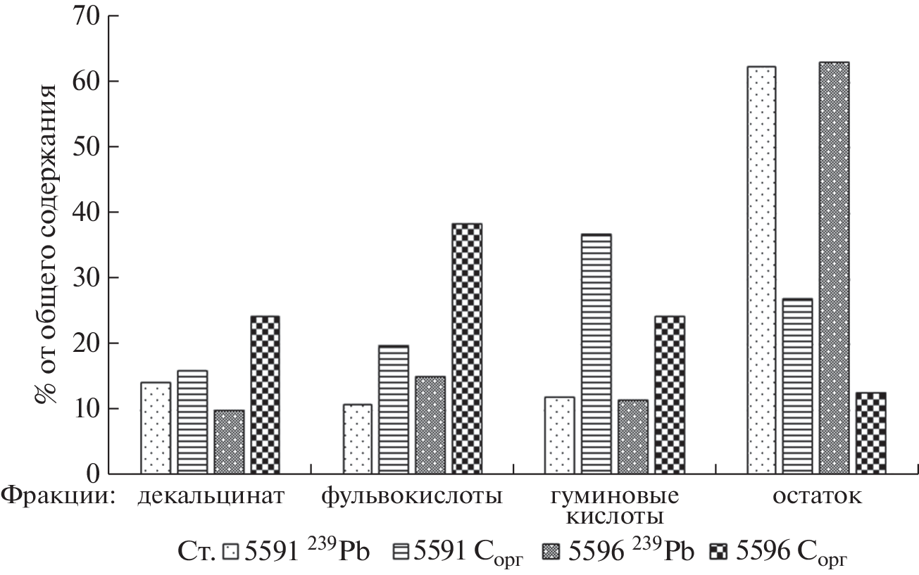 In the presented work, the features of the distribution of Cs-137 and plutonium isotopes in modern sediments of various parts of the Laptev Sea, selected during the expedition studies on the RV “Academician Mstislav Keldysh” in 2017 and 2019, were studied. It was found that the activity of Cs-137 in water and sediments is within the global level, which is typical for the seas of the Arctic region. In all the collected samples the specific content of Pu-239,240 isotopes is below the level of the minimum detectable activity. According to the results of isotope analysis of Pb-210, the sedimentation rates in two columns collected in the Laptev Sea are 0.18 and 0.23 cm/year. The study by several methods of the speciation forms of Pu-239, introduced into the samples of bottom sediments under laboratory conditions, showed that the main content of Pu-239 is associated with difficult-to-dissolve organo-mineral components. 30-39% Pu-239 was found in the composition of organic easily soluble acids and humic substances, which include fulvic and humic acids of bottom sediments.