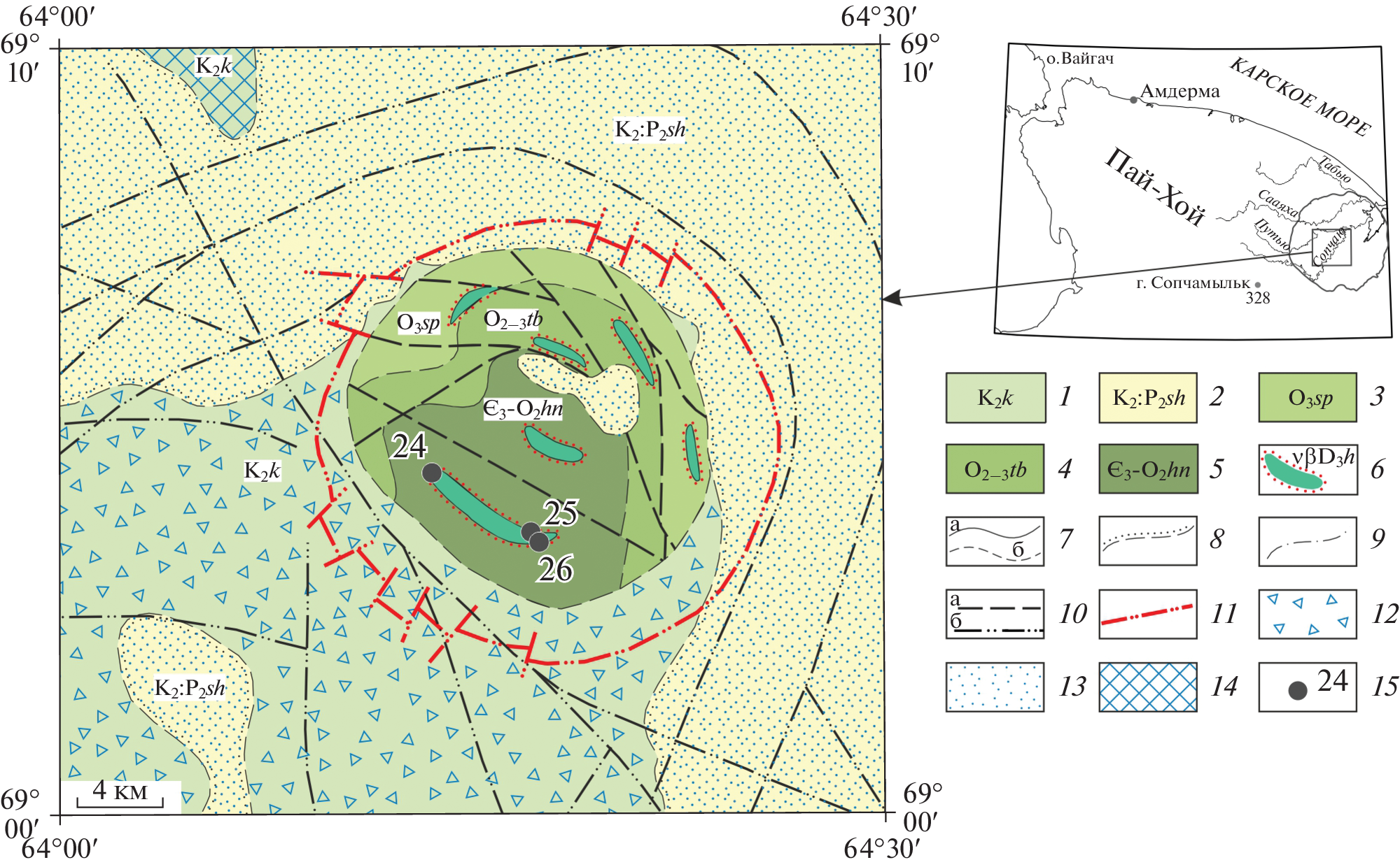 - Ковальчук Н.С., Шумилова Т.Г. (2020) Минералого-геохимические особенности черных сланцев окружения Карской астроблемы (Пай-Хой). Литосфера. 20(2), 168-183.