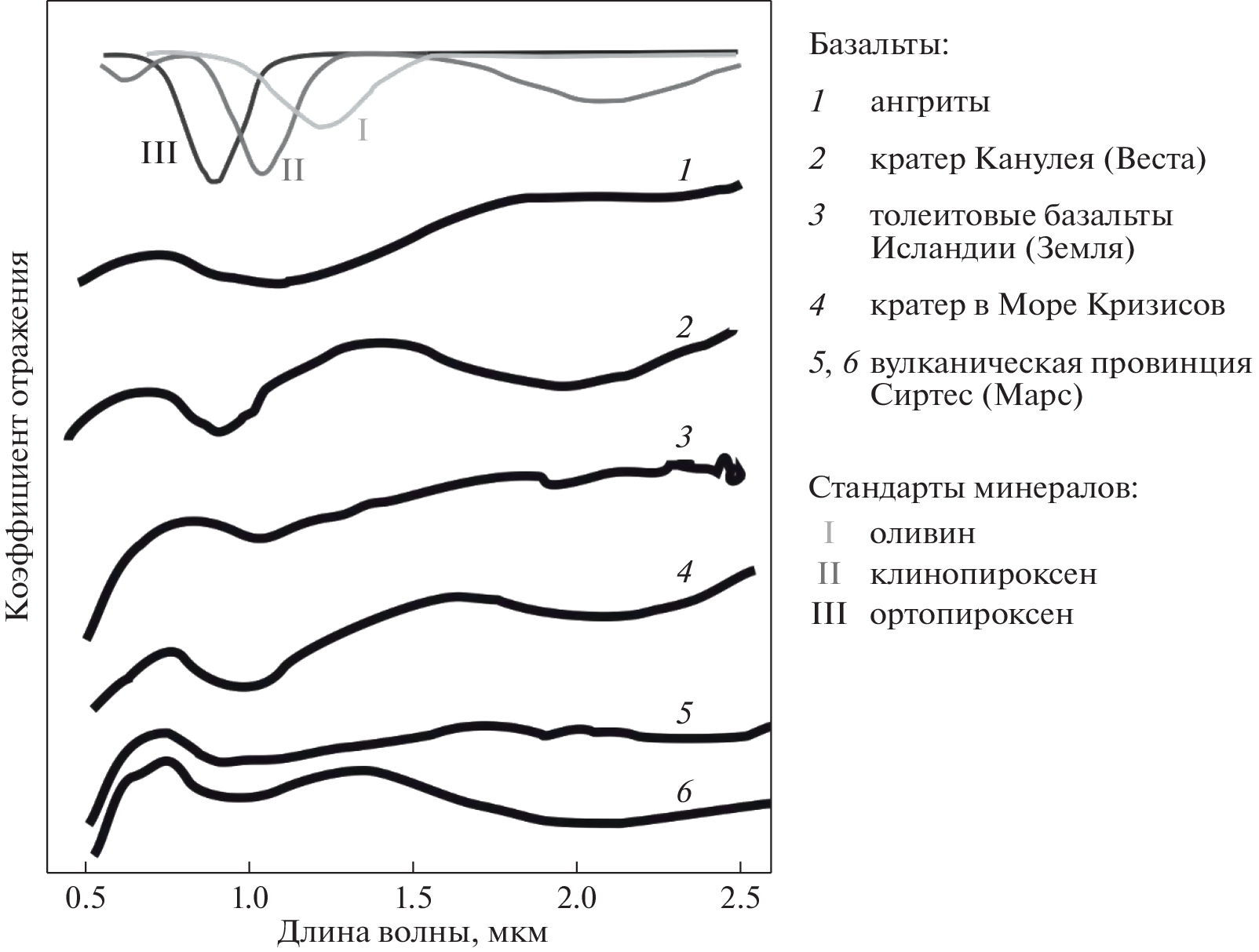 - Markus K., Moroz L., Arnold G., Henckel D., Hiesinger H., Rohrbach A., Klemme S. (2018) Reflectance spectra of synthetic Fe-free ortho-and clinoenstatites in the UV/VIS/IR and impli- cations for remote sensing detection of Fe-free pyroxenes on planetary surfaces. Planet. Space Sci. 159, 43-55.