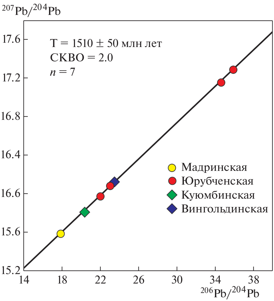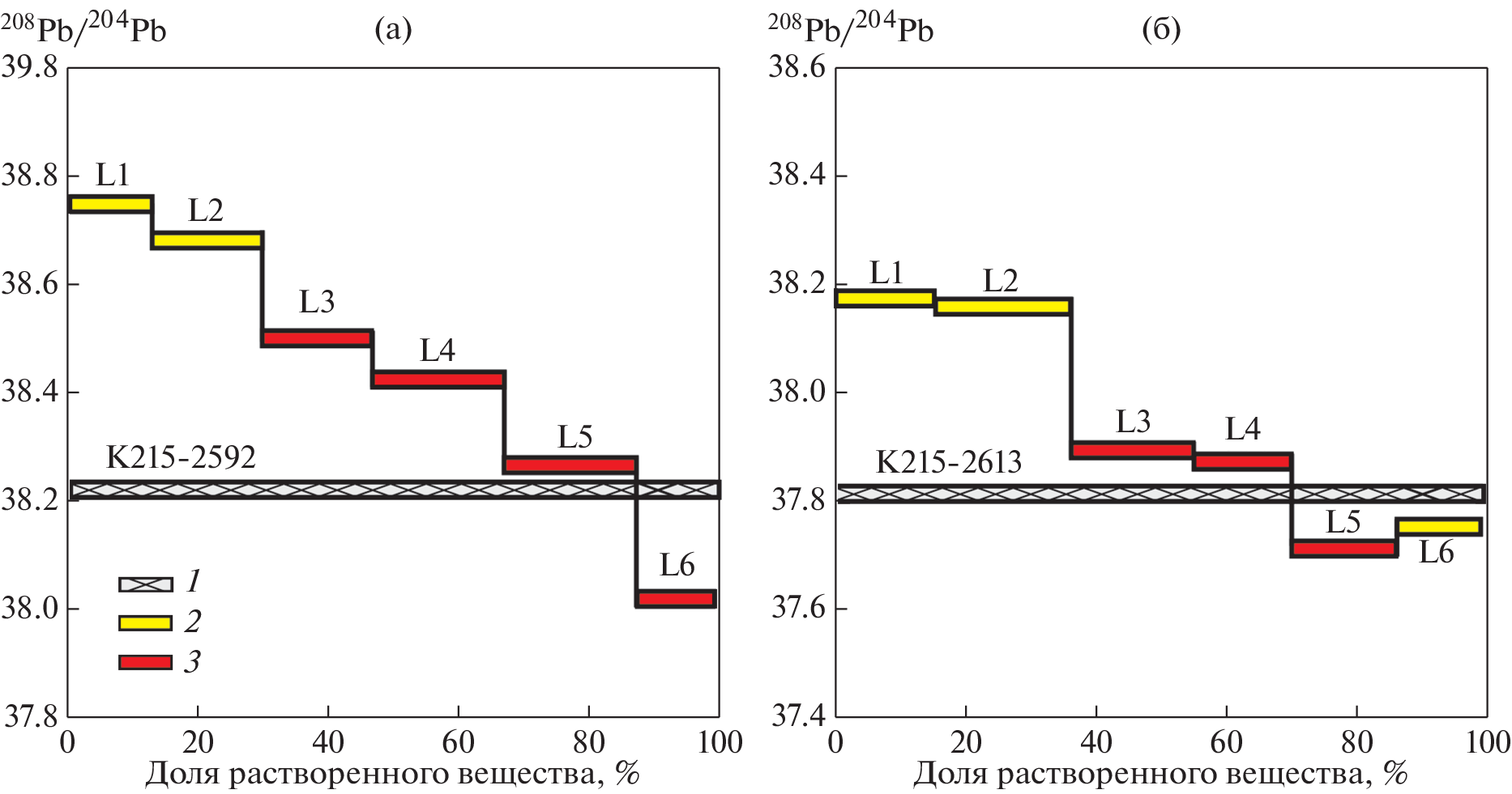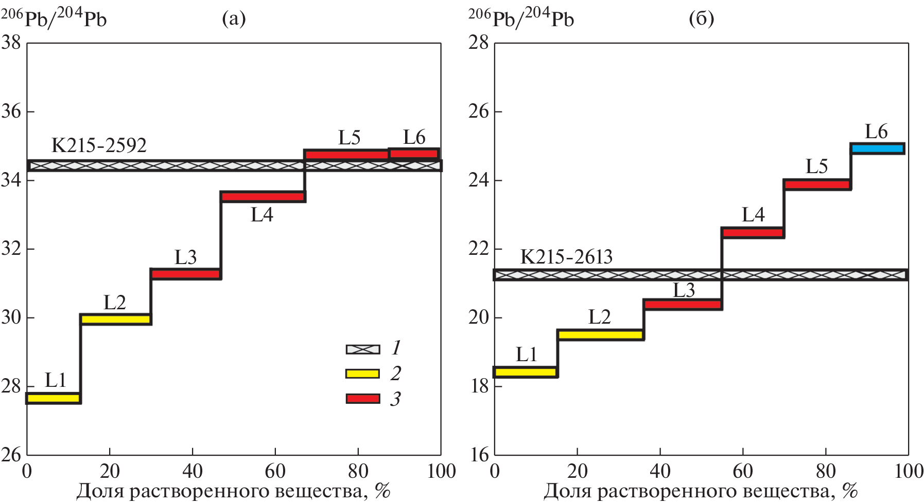 The potential of the stepwise dissolution analytical procedure to obtain chemostratigraphic and geochronological information is demonstrated by a case study of Riphean carbonate rocks of the Kamovskaya Group of the Baykit Uplift (Eastern Siberia). The procedures suggested for studying Rb–Sr and U–Pb systems in carbonate rocks included (1) selection of samples with the lowest 87Sr/86Sr ratio on the basis of preliminary Rb–Sr analysis of the collection using the routine procedure of bulk leaching in 0.1N CH3COOH; (2) detailed study of the Rb–Sr system in selected samples using two-step dissolution in 0.2N CH3COOH and derivation of L(Rb–Sr)1 and L(Rb–Sr)2 fractions; (3) analysis of Pb isotope composition of the selected samples to derive the preliminary value of their age; (4) detailed study of U–Pb system of carbonate rocks using the stepwise dissolution in 0.5N HBr, resulting in six dissolved fractions L(U–Pb)1–L(U–Pb)6 for each of the selected samples; and (5) a final calculation of the Pb–Pb age of the studied rocks, based on the results from the obtained fractions, with the exclusion from the calculation of the initial fractions of this dissolution containing epigenetically altered carbonate material. The values of the primary 87Sr/86Sr ratio in L(Rb–Sr)2 fractions of carbonate rocks of the Kamovskaya Group are as follows: limestone of the Madrinskaya Formation, 0.70490; dolomites of the Yurubchenskaya Formation, 0.70495–0.70503; and dolomites of the Kuyumbinskaya and Vingoldinskaya formations, 0.70580 and 0.70521, respectively. These values characterizing the least altered carbonate material correspond to 87Sr/86Sr ratios in the Early Archean and can be used for chemostratigraphic calculations. Taking into account the Rb–Sr data, the U–Pb age of the Yurubchenskaya Formation carbonate rocks dissolved in six steps was calculated, starting from L(U–Pb)3. The slope of the resulting isochron in the coordinates 206Pb/204Pb–207Pb/204Pb corresponds to 1501 ± 23 Ma, which supports the conclusion that the carbonate rocks of the lower part of the Kamovskaya Group of the Baykit Uplift were formed in the Early Riphean.