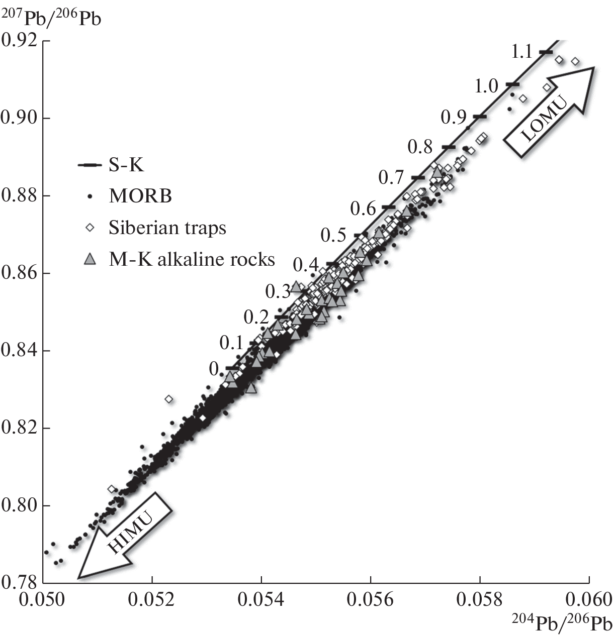 - Kogarko L.N., Zartman R.E. (2007) A Pb isotope investigation of the Guli massif, Maymecha-Kotuy alkaline-ultramafic complex, Siberian flood basalt province, Polar Siberia. Mineral.Petrol. 89(1), 113-132.