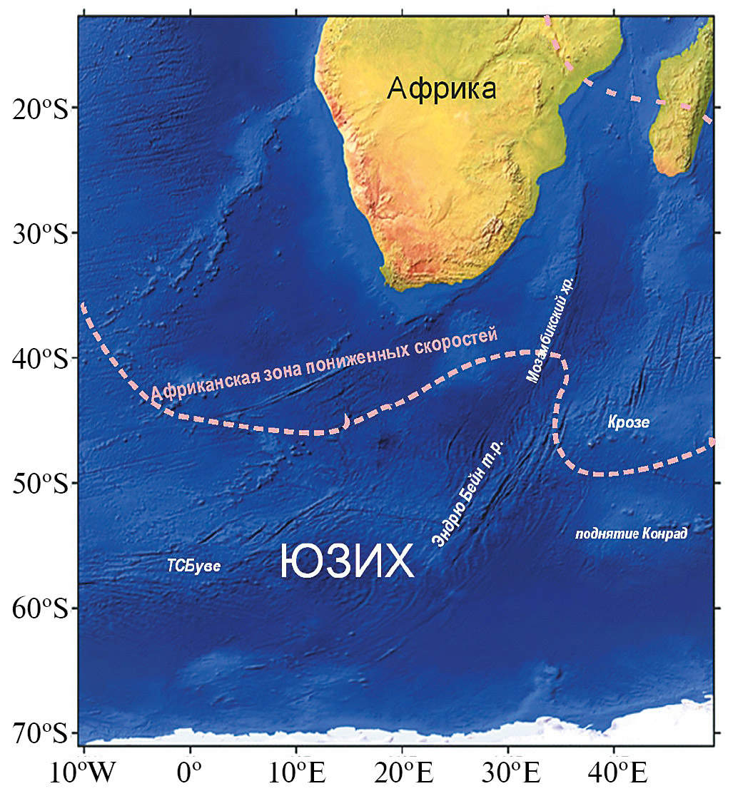 9. Fig. 8. The distribution area of the African plume within the Southern Ocean according to transverse wave velocity data (Jacques et al., 2019).