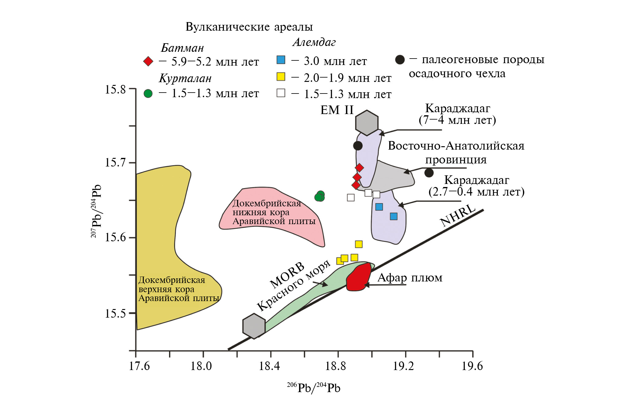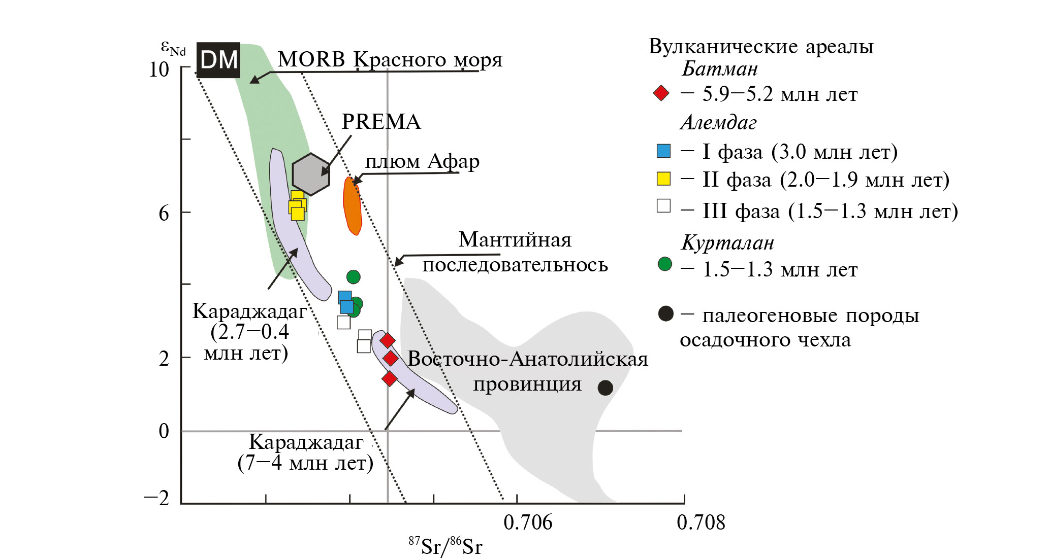 Полученные геохронологические и изотопно-геохимические данные, их корреляция с ранее опубликованными нами результатами для соседней вулканической области Караджадаг (Keskin et al., 2012б), позволяют в общих чертах проследить пространственно-временные закономерности развития молодого вулканизма в пределах северо-восточной части Аравийской плиты и эволюцию уровней магмогенерации в мантии под регионом в позднем миоцене – плейстоцене.