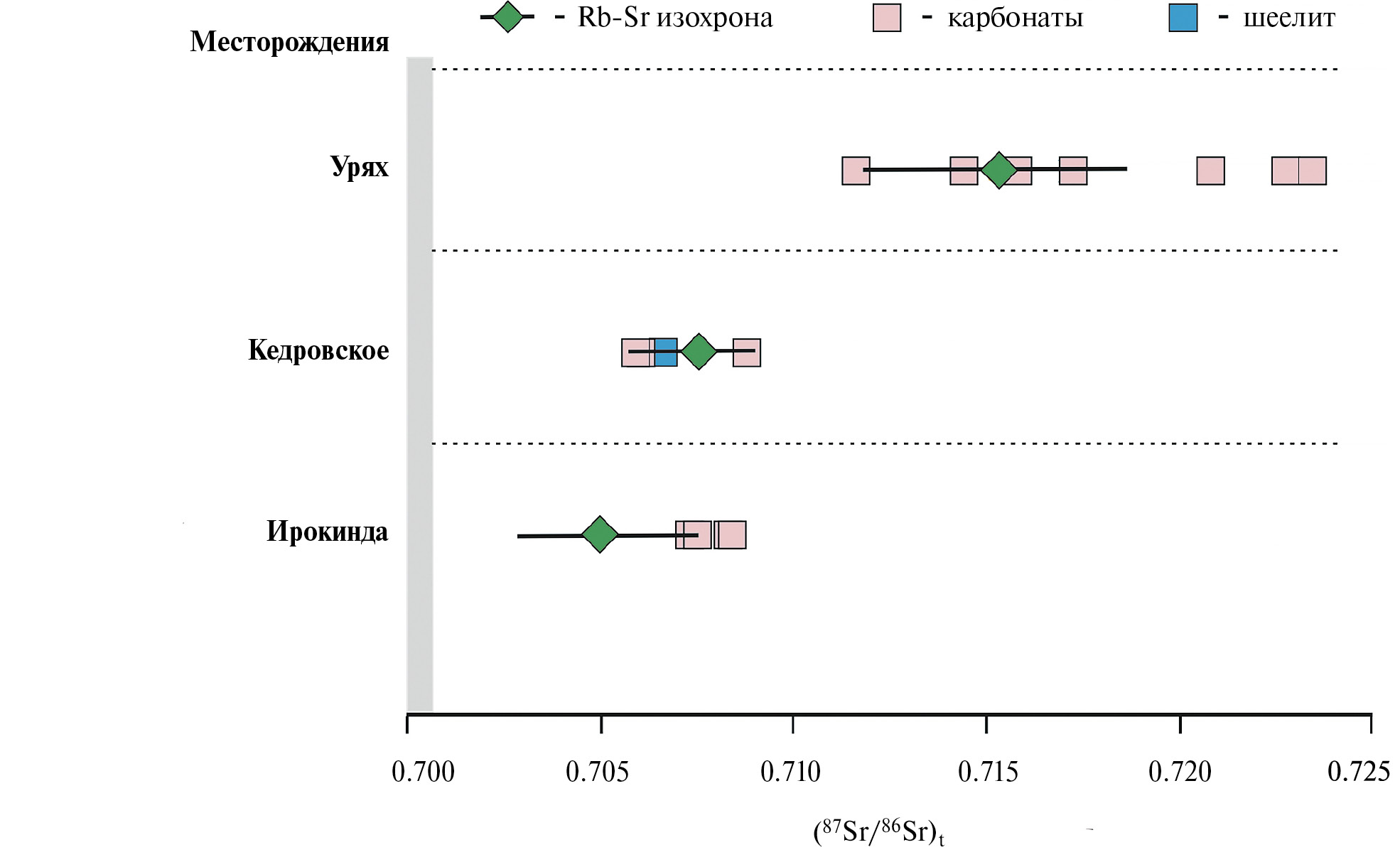 - Kuznetsov A.B., Ovchinnikova G.V., Gorokhov I.M., Letnikova E.F., Kaurova O.K., Konstantinova G.V. (2013) Age constraints on the Neoproterozoic Baikal Group from combined Sr isotopes and Pb-Pb dating of carbonates from the Baikal type section, southeastern Siberia. J. Asian Earth Sci. 62, 51–66.