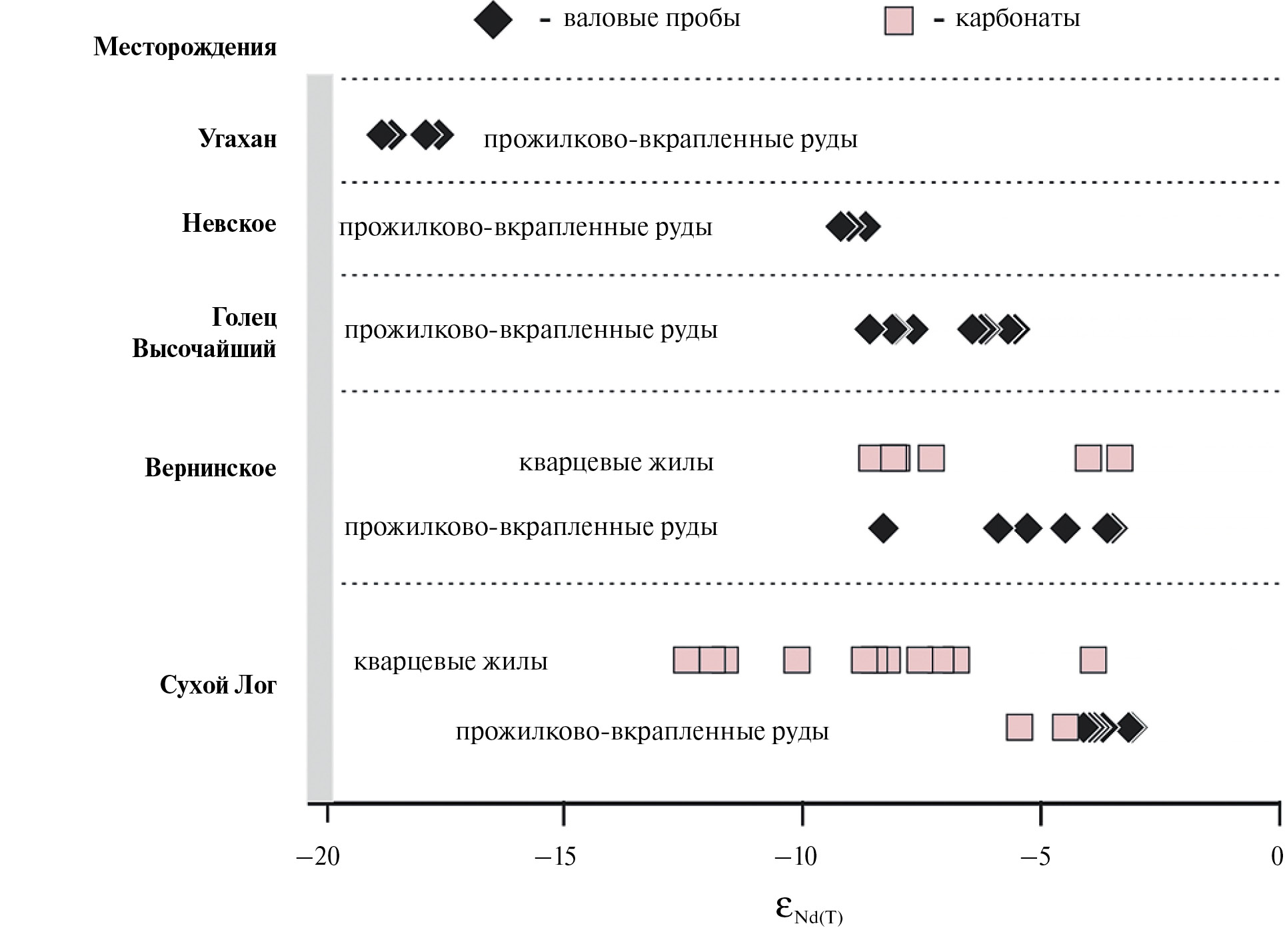 Существует большое разнообразие классификаций мезотермальных золоторудных месторождений, обзоры которых приведены в работах (Hagemann, Cassidy, 2000; Bierlein, Crowe 2000; Константинов, 2010б; Хомич, Борискина, 2011; Викентьев и др., 2016; Sillitoe, 2020). При их разработке исследователи использовали различные подходы и основывались на геологических, минералогических, геохимических, генетических и геодинамических особенностях золоторудных месторождений. В России наиболее широкое использование получил рудно-формационный подход (Петровская и др., 1976; Сопко, 1977; Сафонов, 1997, 2010; Соболев, 2008; Викентьев и др., 2016). Каждая из предложенных классификаций имеет как свои преимущества, так и недостатки. В настоящей работе при типизации изученных месторождений Северного Забайкалья использовалась классификация, разработанная для мезотермальных месторождений золота D.I. Groves и R.J. Goldfarb. Этими исследователями было выделено два основных типа: золоторудные месторождения, генезис которых непосредственно связан с магматическими системами (intrusion related type) и орогенные (oroginic type) месторождения золота, происхождение которых является одним из наиболее обсуждаемых проблем в современной геологии (de Booder et al., 2012; Hronsky et al., 2012; Tomkins, 2013a; Gaboury, 2019; Groves et al., 2020a,b; Goldfarb, Pitcairn, 2023).