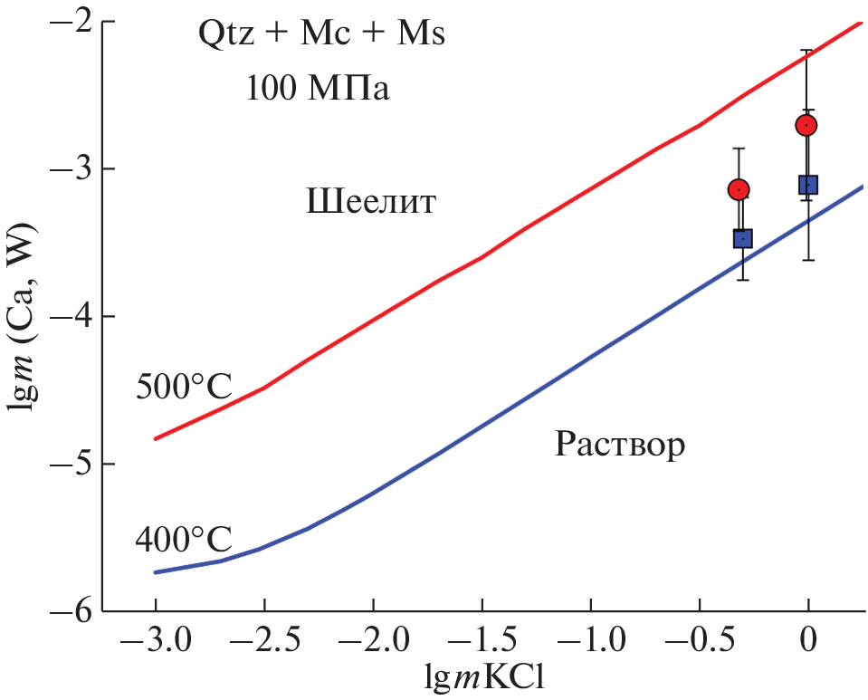FEATURES OF THE INTERACTION OF SHEELITE WITH HCl SOLUTIONS AT 400 AND 500 ° C, 100 MPa AND VARIOUS f(O2) (ACCORDING TO EXPERIMENTAL AND CALCULATED DATA)
