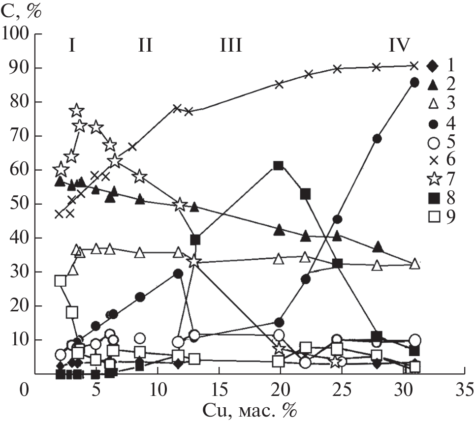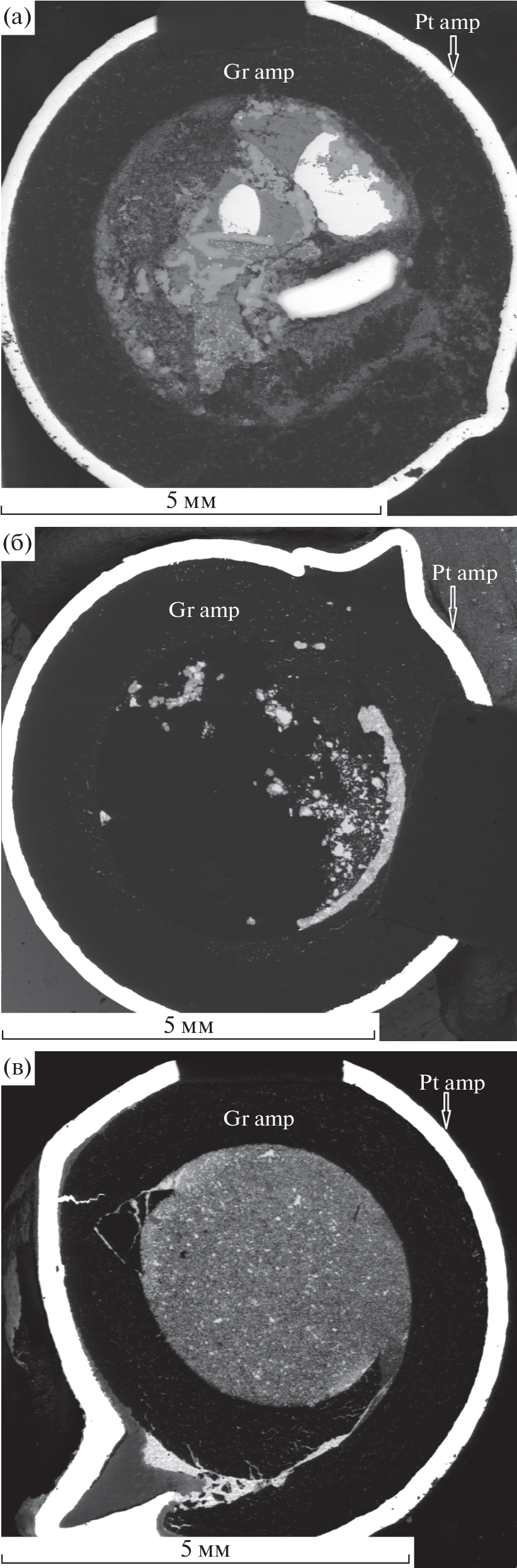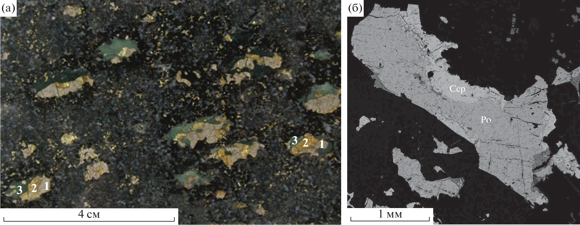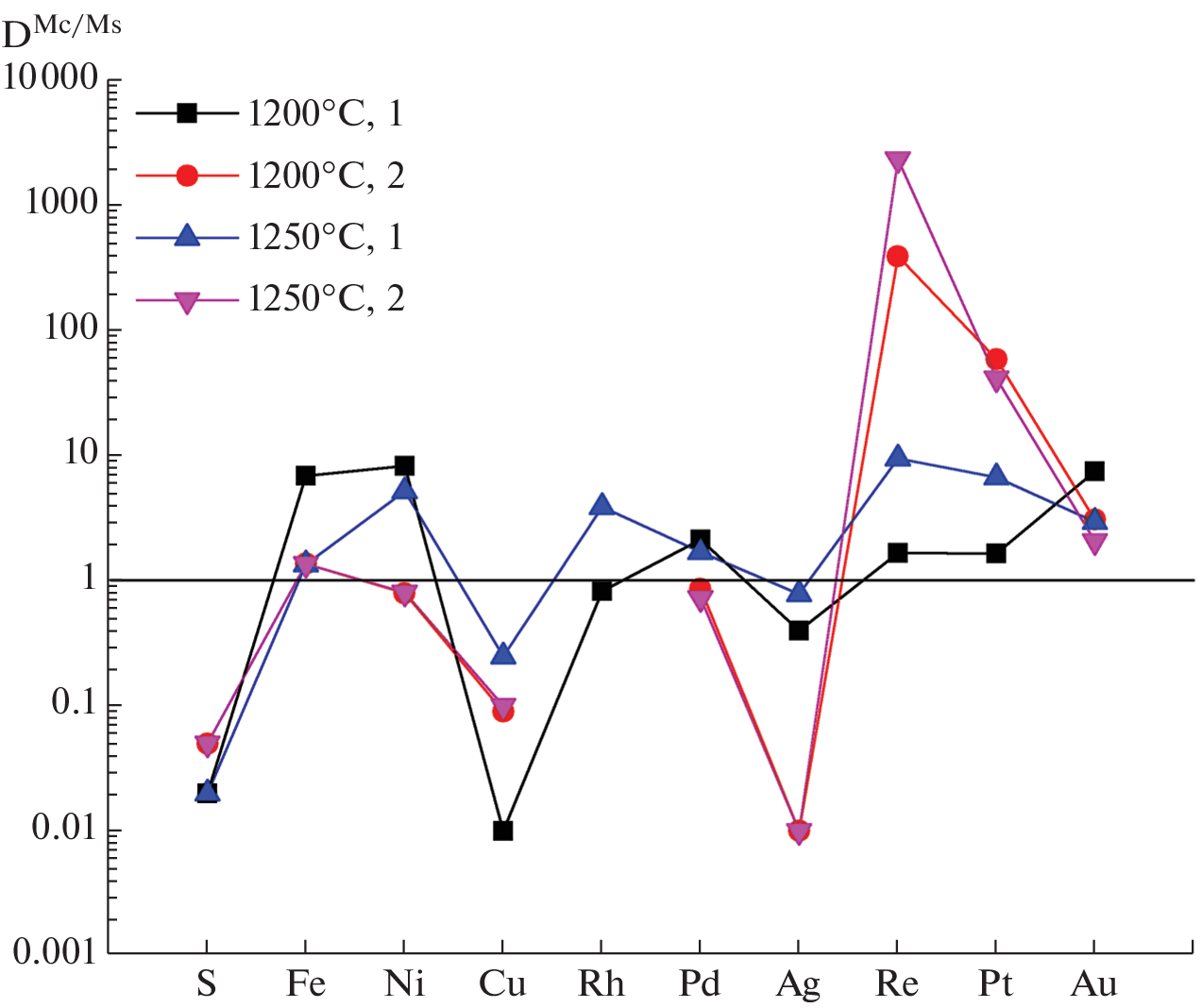 The results of an experimental study of the melting of a graphite-saturated Fe–Fe(CuNi)S–C system at 0.5 GPa and 1150–1250°С with the addition of impurity elements Ag, Au, Re, Pt, Pd, and Rh are presented. The quenched sulfide melt forms the matrix of the sample, at 1150–1200°С it is represented by the FeNiS pyrrhotite phase (Mss) with inclusions of the FeCuS phase (Iss) anomalously enriched in Cu. At 1250°С, the sulfide melt is quenched in the form of a homogeneous pyrrhotite Ms phase of the Fe(CuNi)S composition. The change in the Ms composition of the quenched sulfide melt by the two-phase Mss + Iss association is considered as evidence of the existence of supra-liquidus Mss and Iss stratification of the sulfide Fe–Ni–Cu melt in the range of 1150–1250°С. As a result of fractionation of elements between immiscible Fe-sulfide (Ms) and Fe-metal (Mc) melts, Fe, Ni, Pt, Re, Au are predominantly concentrated in the metal melt, while Cu, Ag are concentrated in the sulfide melt. The role of the supra-liquidus Mss–Iss liquation in the genesis of sulfide mineralization of the deposits of the Talnakh ore cluster, including pyrrhotite-chalcopyrite "drops" in picritic gabbro-dolerites, as well as pyrrhotite and chalcopyrite types of ores of zonal sulfide deposits, is discussed. The role of Ms and Mc separation of the Fe-sulfide melt during carbon contamination in the Cu–Pd specialization of magmatic sulfide deposits of the Norilsk region is considered.