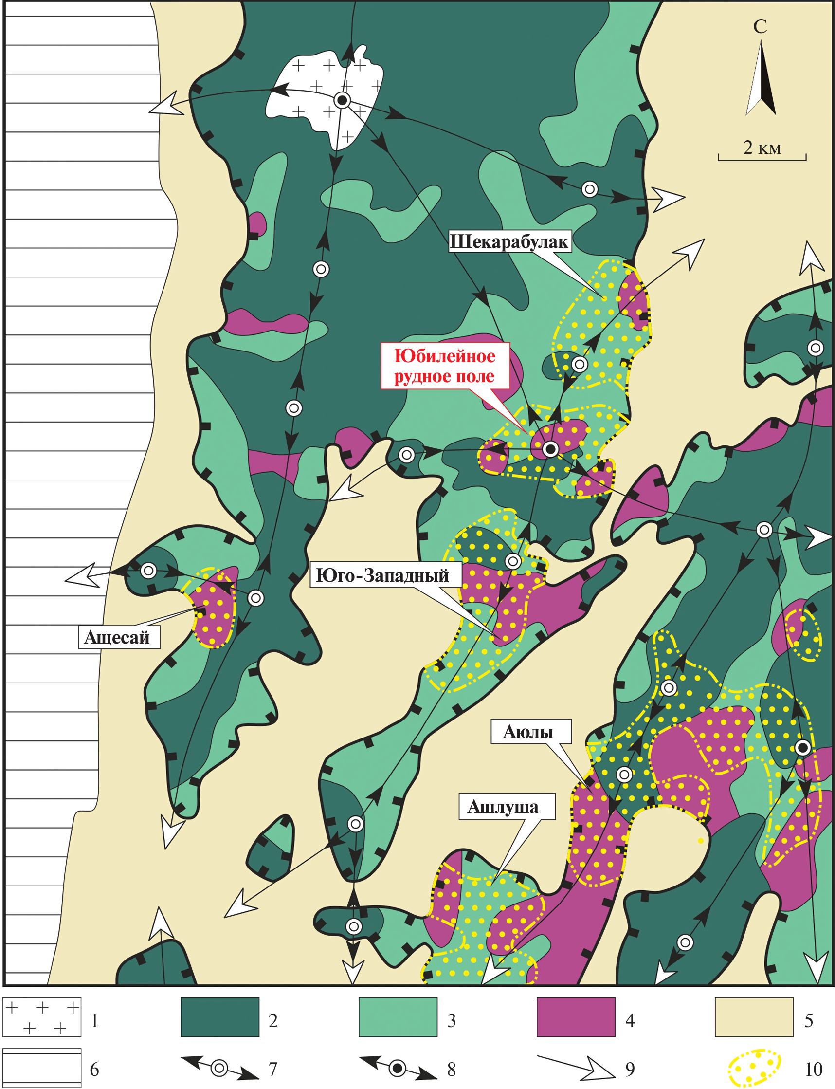 - Shatov V.V., Moon C.J., Seltmann R. Discrimination between volcanic associated massive sulphide and porphyry mineralisation using a combination of quantitative petrographic and rock geochemical data: A case study from the Yubileinoe Cu–Au deposit, western Kazakhstan // J. Geochem. Explor. 2014. V. 147. P. 26–36.