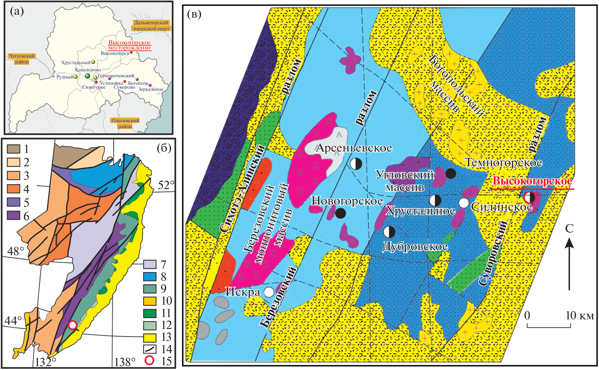 - Рябченко В.М., Гоневчук В.Г., Гореликова Н.В., Гоневчук Г.А. Эксплозивные брекчии Высокогорского олово-порфирового месторождения: генезис и роль в рудообразовании (Кавалеровский рудный район, Приморье) // Тихоокеанская геология. 2017. Т. 36. № 3. С. 41–56.