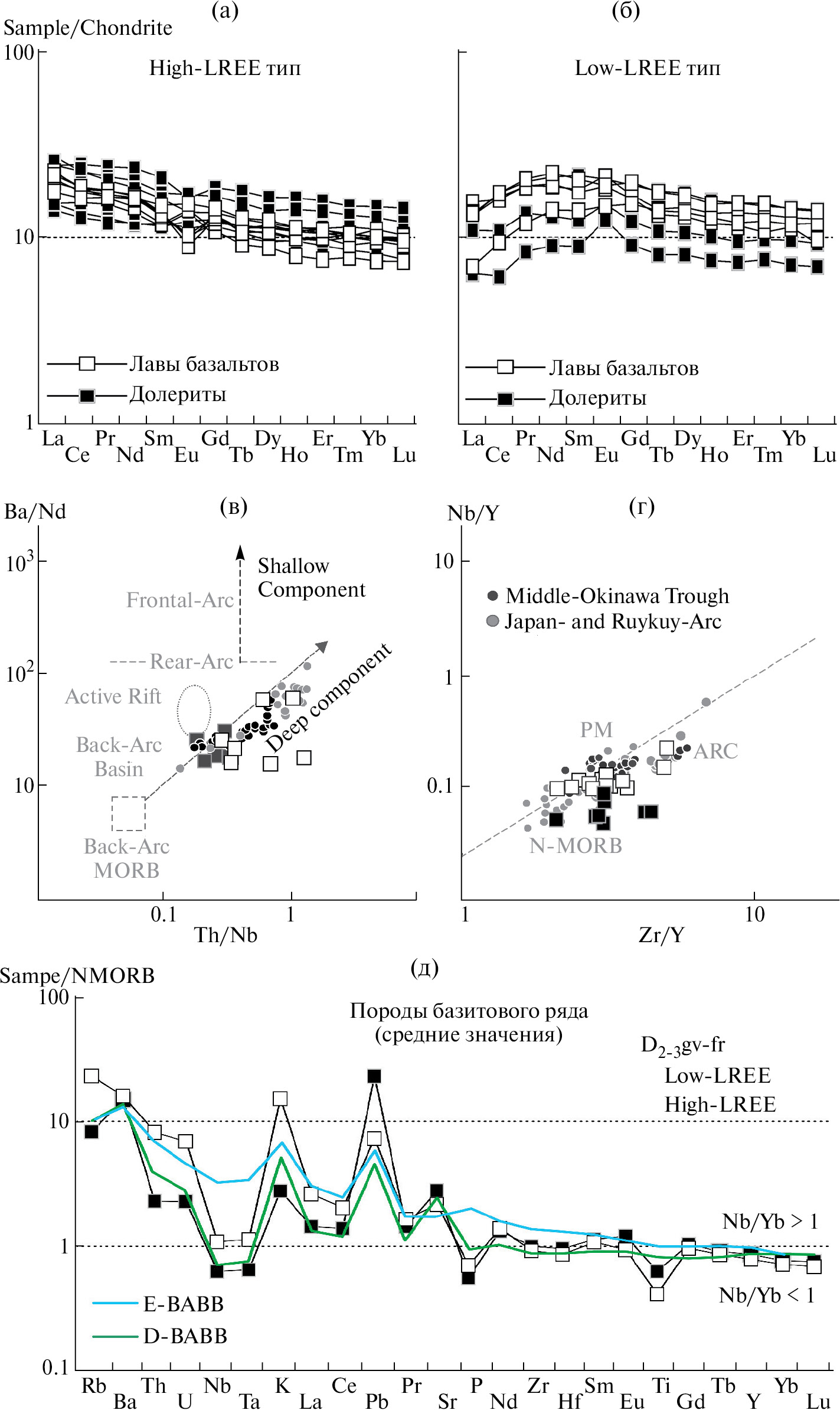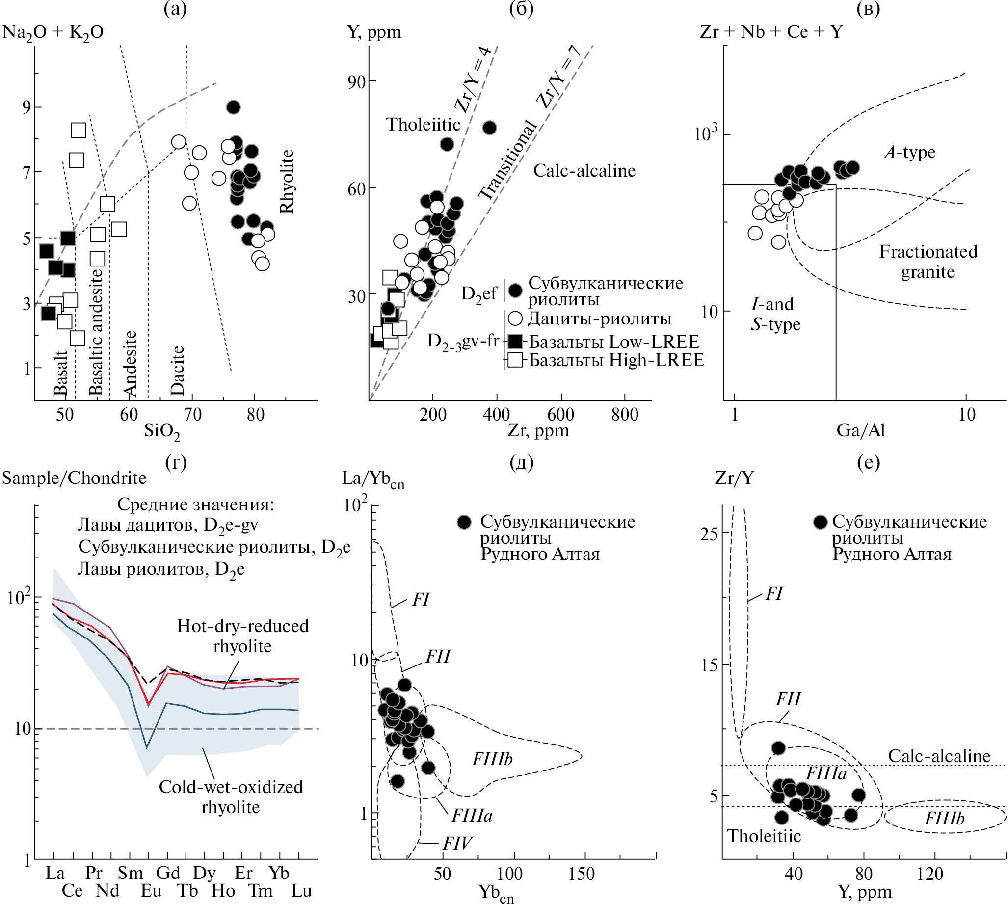 Несмотря на противоречия в интерпретации геодинамической природы Рудного Алтая (Филатов, Ширай, 1975; Вулканогенные…, 1978; Ротараш и др., 1982; Авдонин и др., 1987; Гаськов и др., 1991; Елкин и др., 1994; Берзин, Кунгурцев, 1996; Караулов, 1997; Миронов и др., 1998; Демина, Промыслова, 2002; Промыслова, 2005; Wu et al., 2015; He et al., 2015; Ma et al., 2018; Kuibida et al., 2020), общим для представлений большинства авторов являлся вывод о последовательности от инициального рифтогенеза (D1–2) к формированию островной дуги (D3 –C1). Однако, с точки зрения предлагаемых моделей, осталось необъяснимым, чем был обусловлен инициальный бимодальный вулканизм Рудного Алтая (ранний-средний девон), развивавшийся в рифтогенной обстановке на фоне общего погружения мелководно-морского бассейна. Предшествующие островодужные ассоциации отсутствовали. При этом в позднем девоне на месте рифтогенного бассейна Рудного Алтая формировалась островная дуга с андезитовым вулканизмом (Вулканогенные…, 1978; Большой Алтай…, 1998, 2000). В этом контексте развитие бимодального вулканизма является обычным явлением обстановок растяжения, в то время как развитие андезитов обычно соответствует геодинамическим условиям сжатия (Геодинамические…, 1989; Зоненшайн, Кузьмин, 1992; Turcotte, Schubert, 2014).