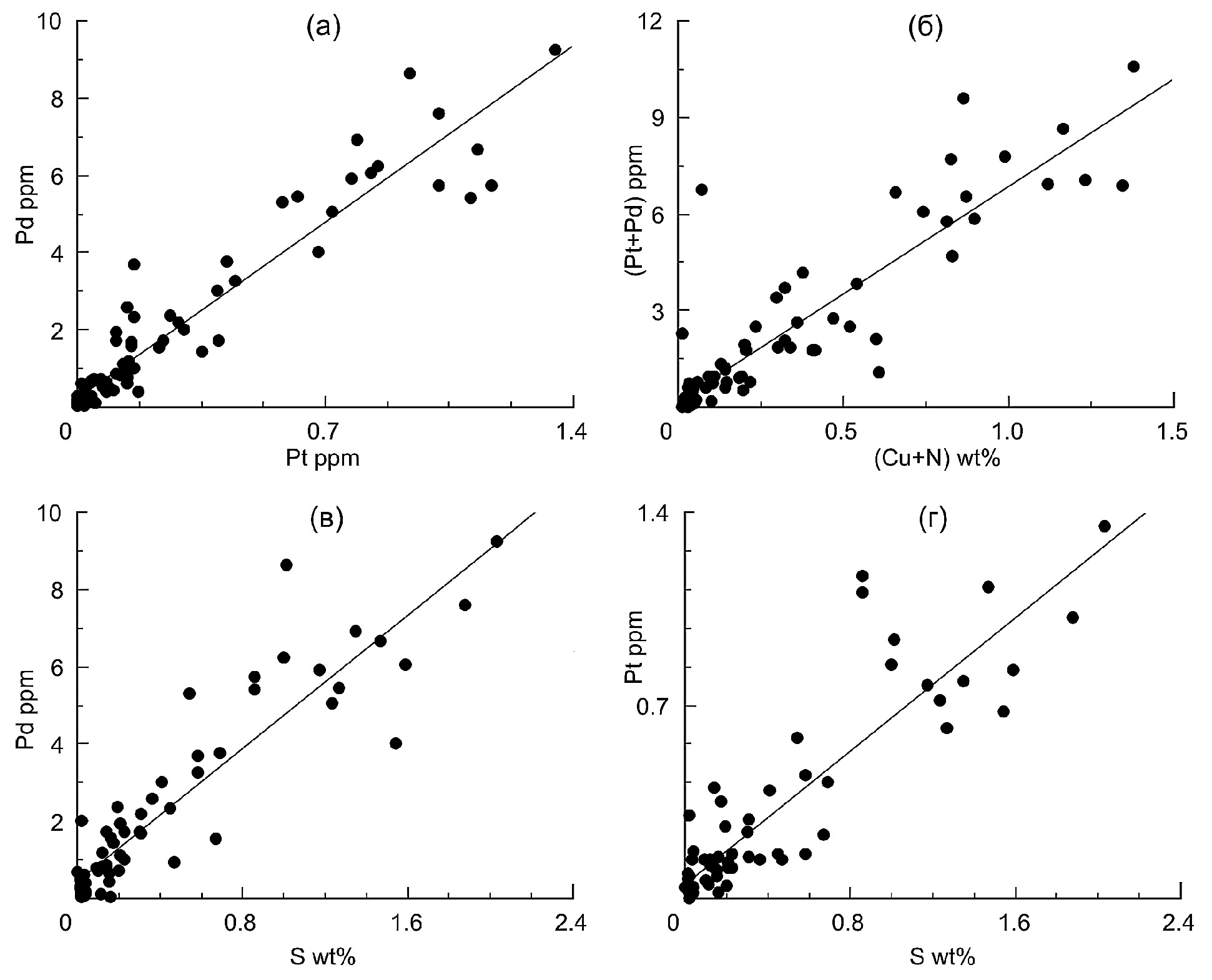 Высокая положительная корреляция Pt и Pd с Ni, Cu и S в рудных горизонтах и тесная ассоциация МПГ с интеркумулусными Cu-Ni-Fe сульфидами свидетельствует о существенной роли магматических процессов в формировании рифа и отсутствии миграции ЭПГ на значительные расстояния при последующих субсолидусных и флюидно-гидротермальных преобразованиях.