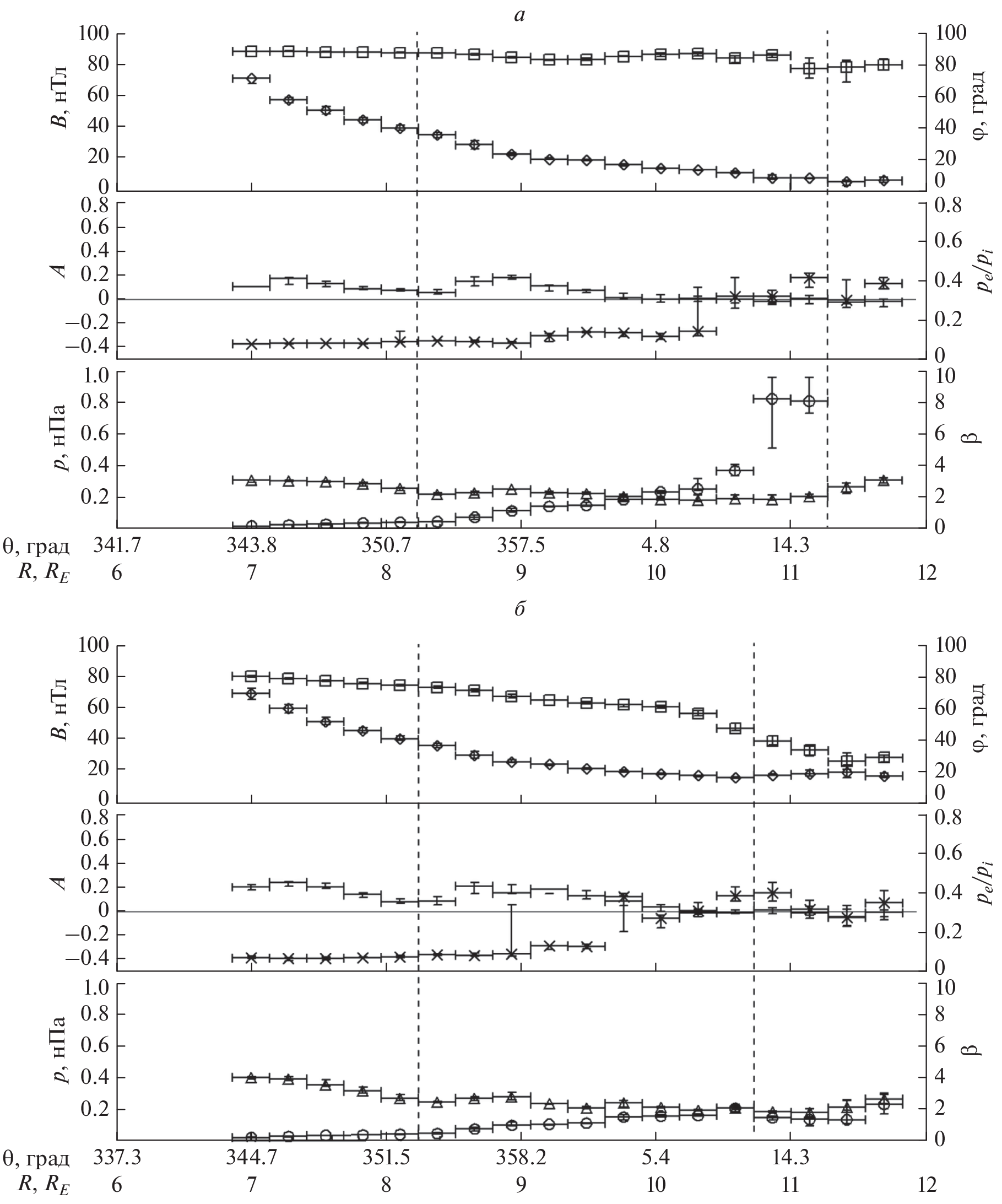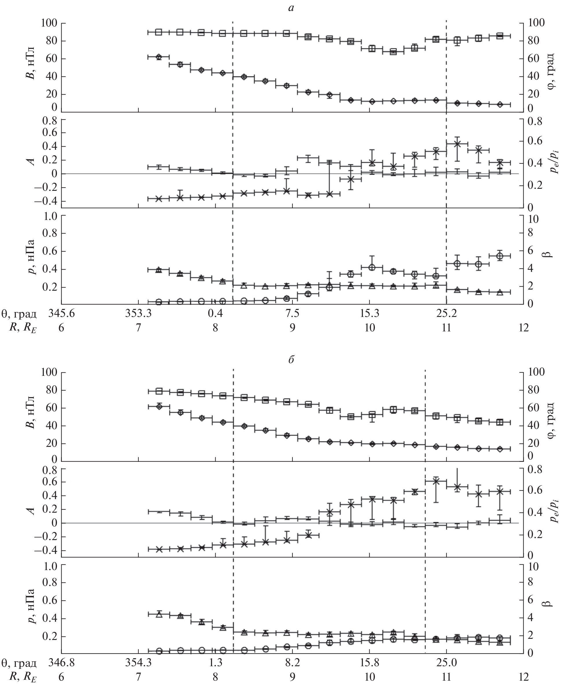 field, and plasma parameter in the night sector of the Earth’s magnetosphere at geocentric distances from 7