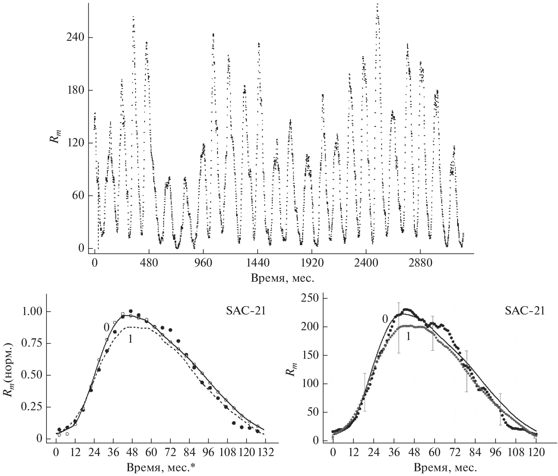 - – Hathaway D.H., Wilson R.M., Reichmann E.J. The shape of the sunspot cycle // Sol. Phys. V. 151. P. 177–190. 1994. https://doi.org/10.1007/BF00654090