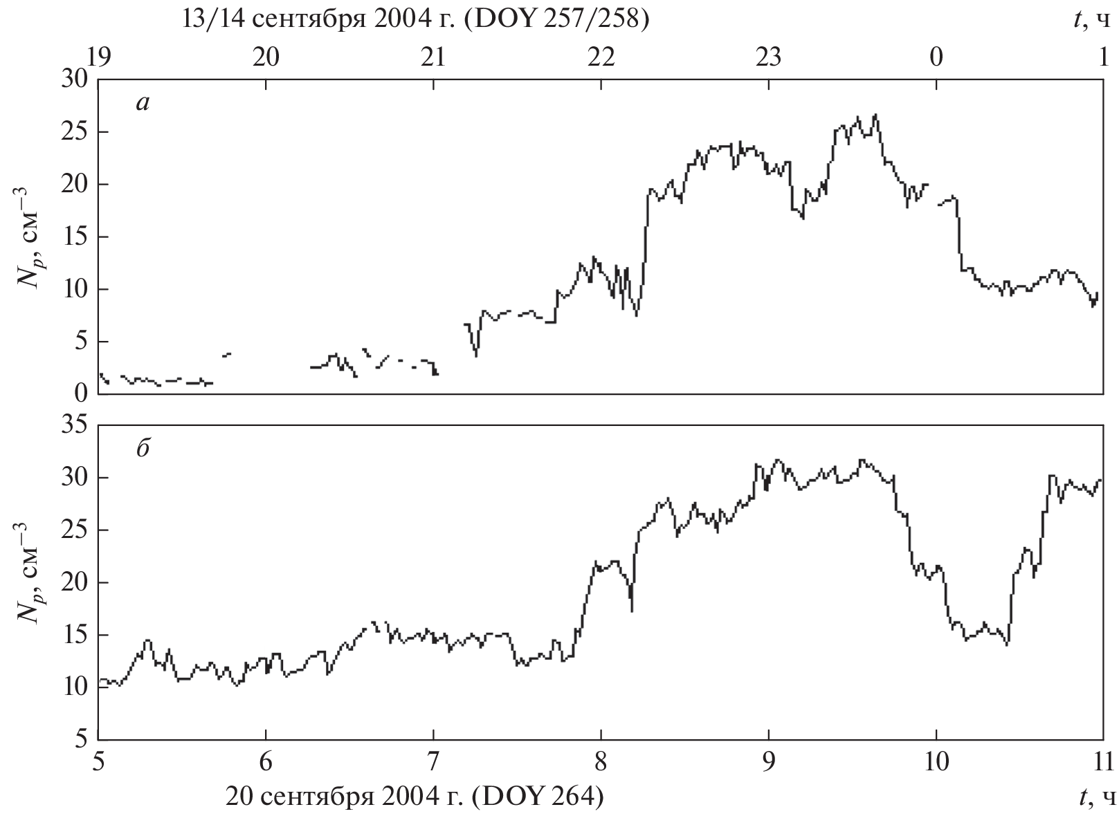 of 5–17 days, increases in the proton concentration and magnetic field strength were recorded at 7–15 times the