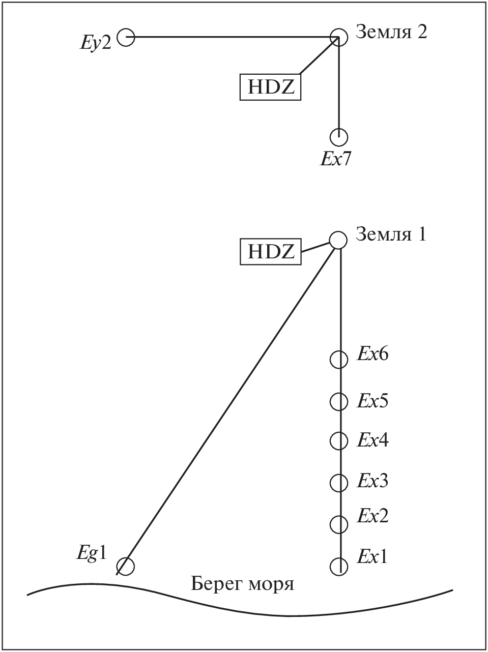 by geophysical stations GI-MTS-1. The horizontal electric field was recorded by telluric lines ~50 m