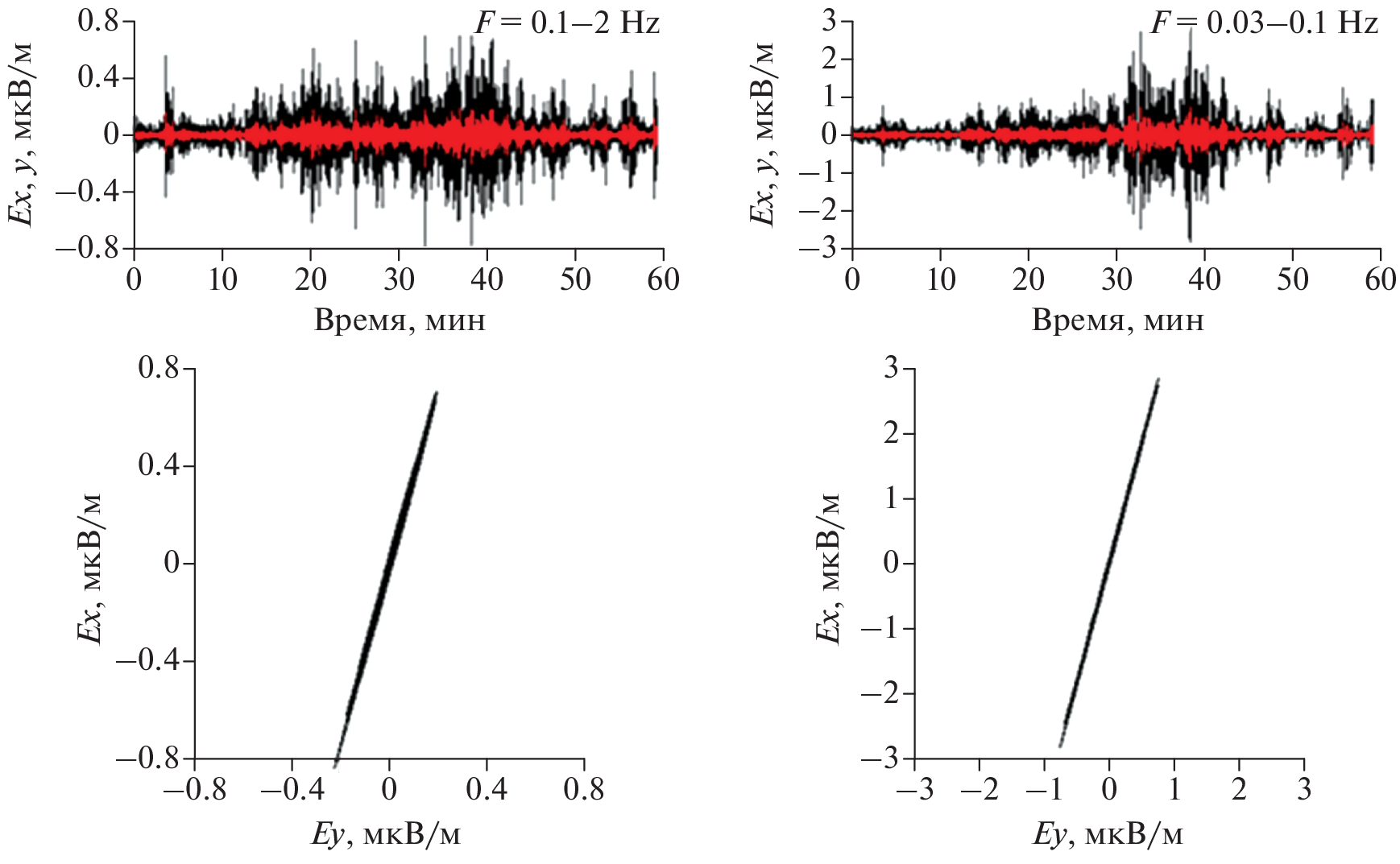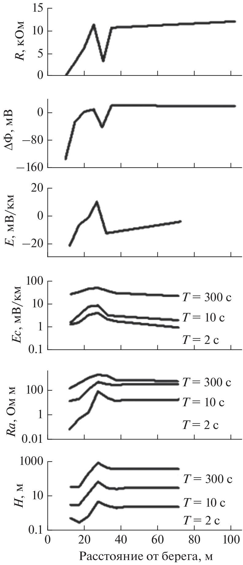 increase in the amplitude of ULF variations (F < 1 Hz) of the Ex component adjacent to the water’s edge was