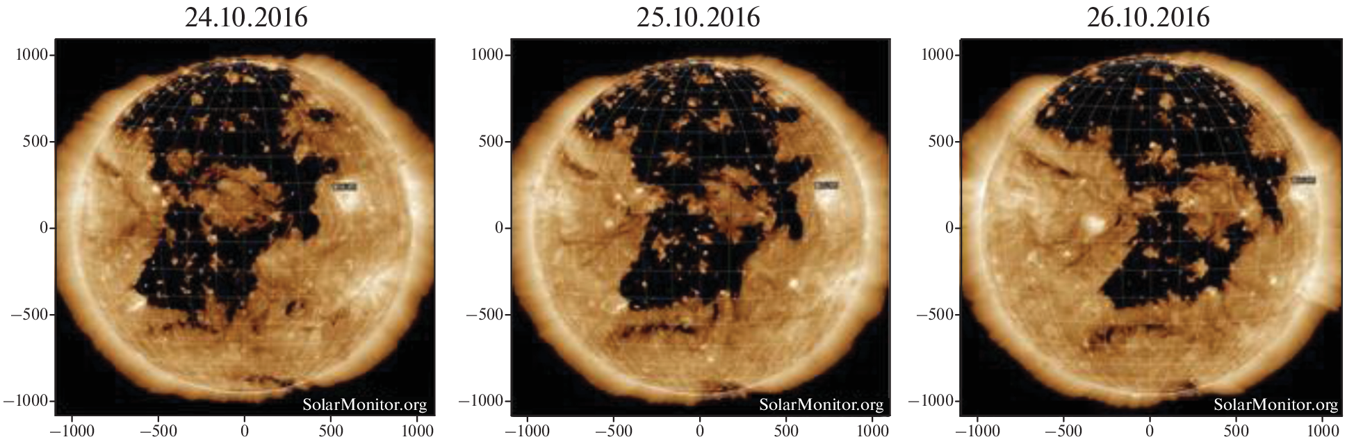 - − Hiremath K.M., Hegde M. Rotation rates of coronal holes and their probable anchronic depts // ApJ. V. 763. № 2. P. 137–148. 2013.