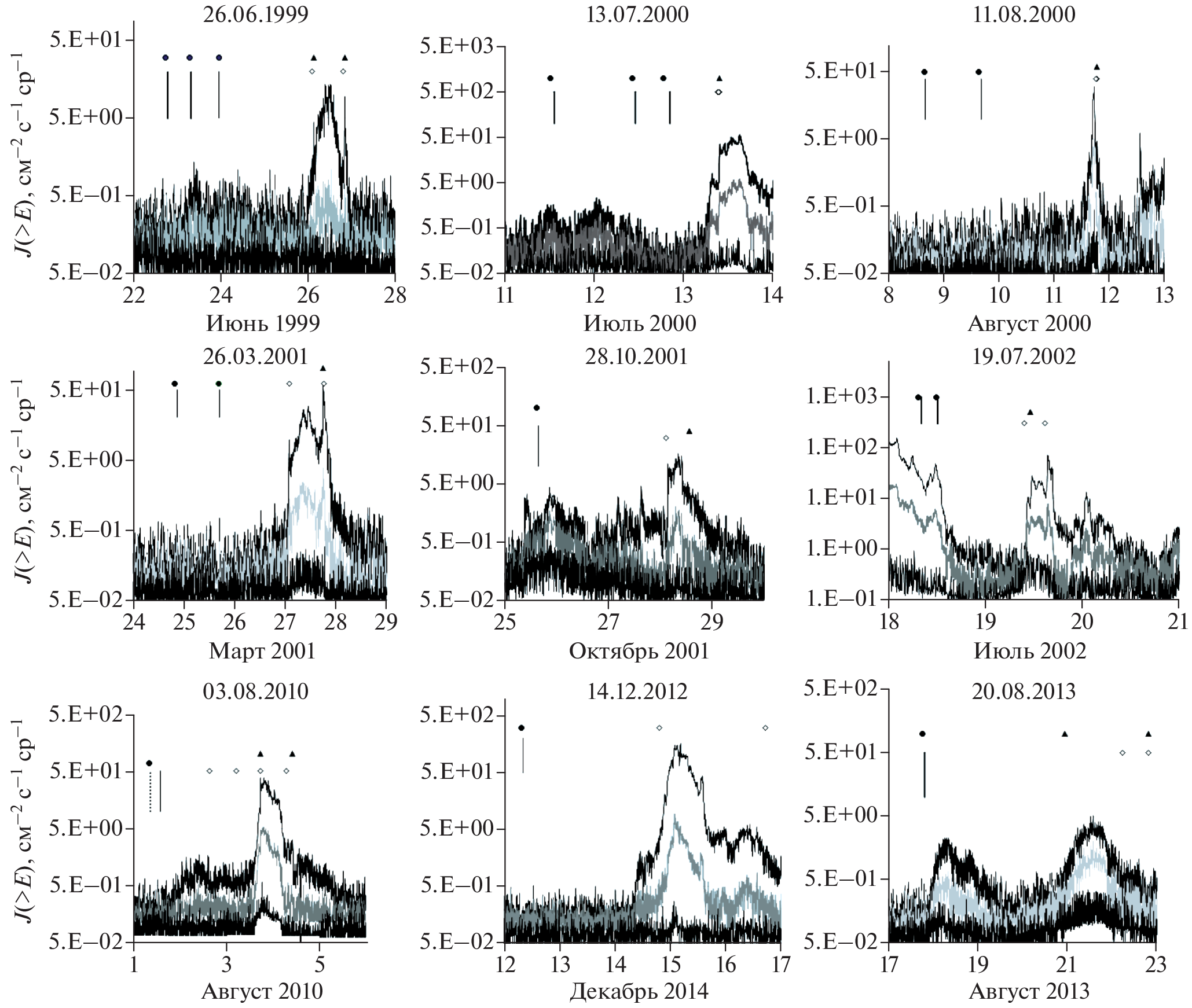 As a rule, these events involve small proton fluxes that are detected near the Earth. All of the selected