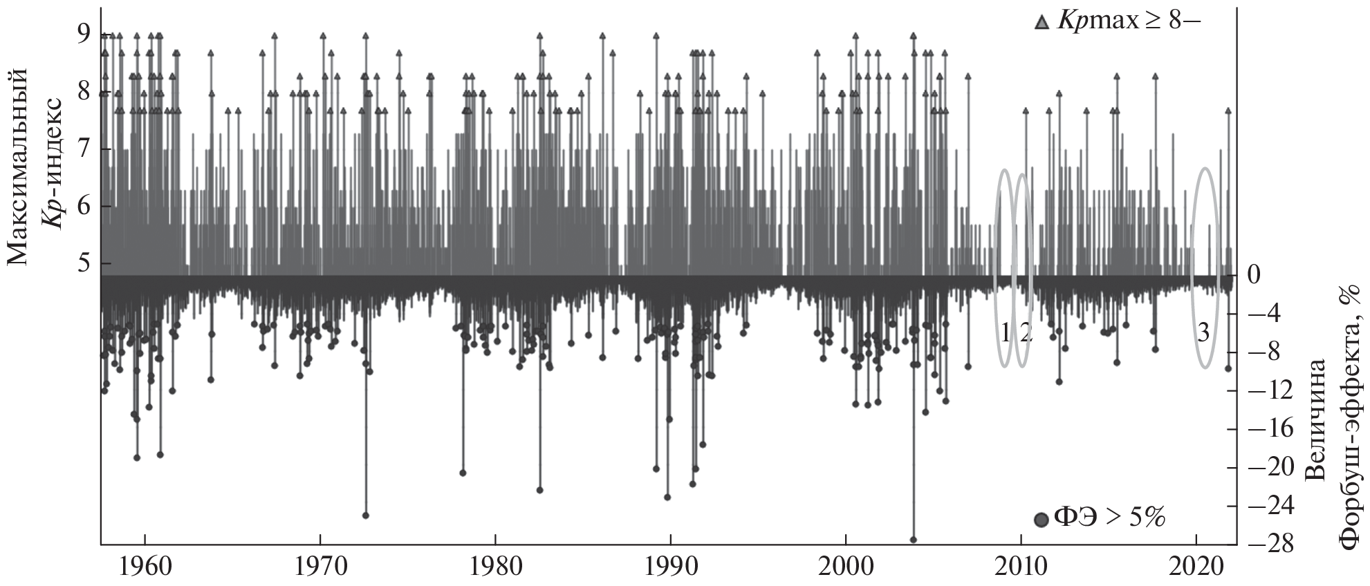 - − Matzka J., Stolle C., Yamazaki Y., Bronkalla O., Morschhauser A. The geomagnetic Kp index and derived indices of geomagnetic activity // Space Weather. V. 19. № 5. Article ID e2020SW002641. 2021.