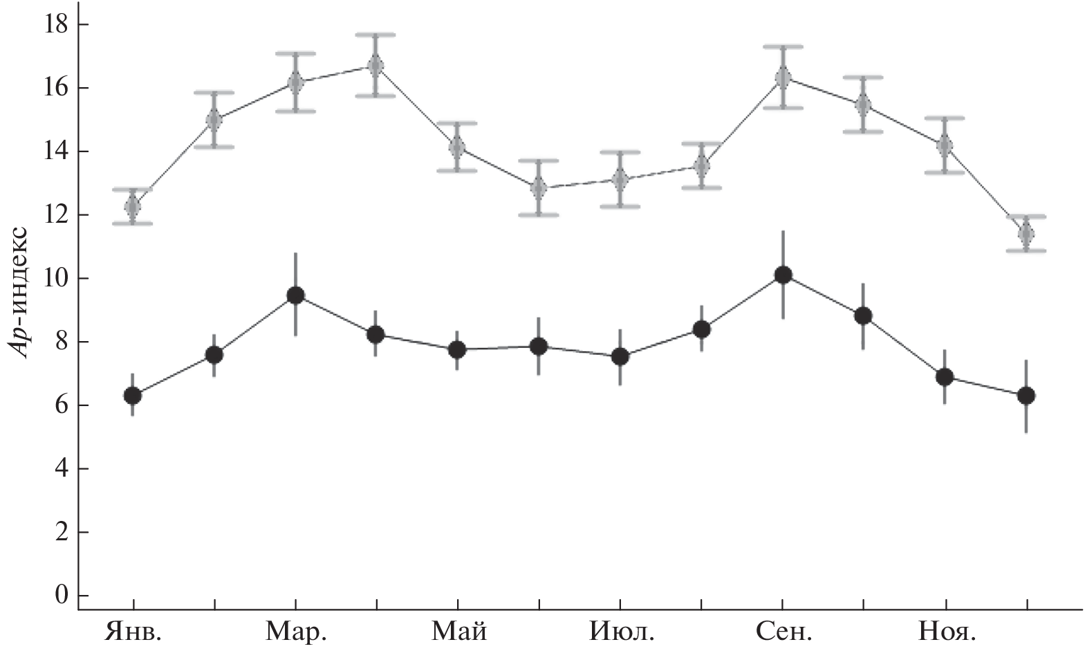 - − Cliver E.W., Kamide Y., Ling A.G. The semiannual variation of geomagnetic activity: Phases and profiles for 130 years of aa data // J. Atmos. Solar-Terr. Phys. V. 64. № 1. P. 47–53. 2002.