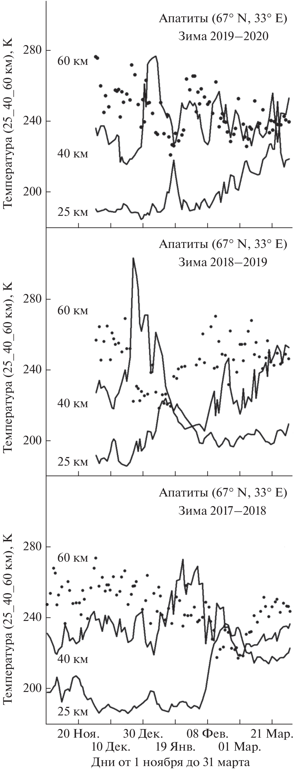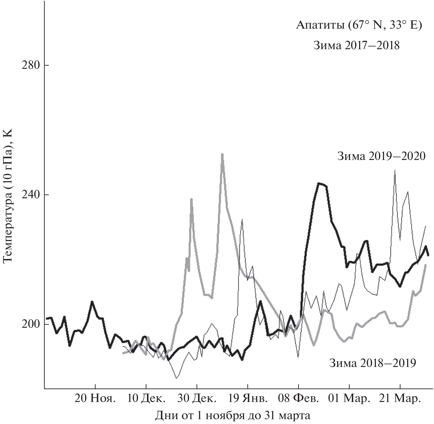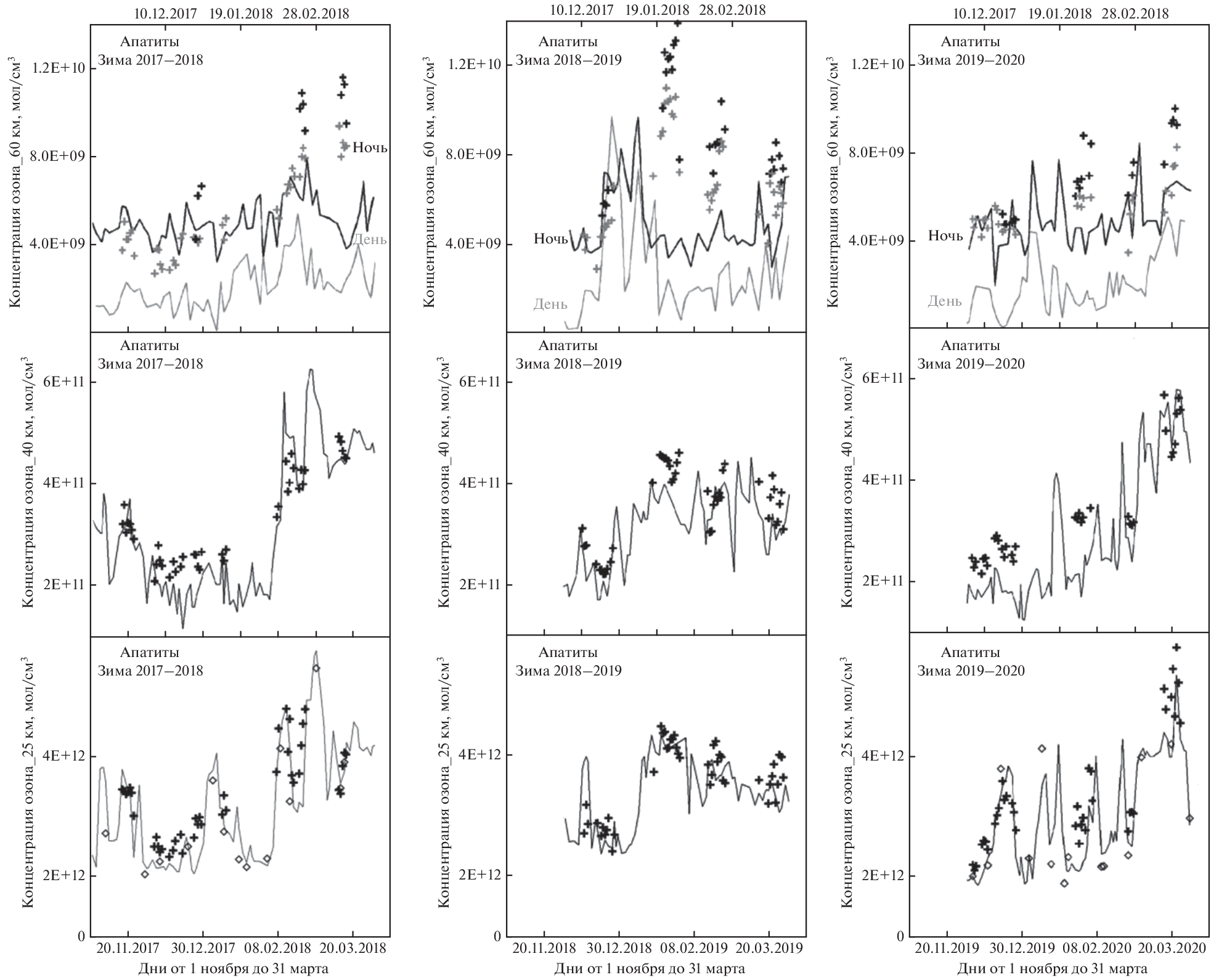 (67° N, 33° E) during three winters (2017–2018, 2018–2019 and 2019–2020) are presented. Long-term ozone
