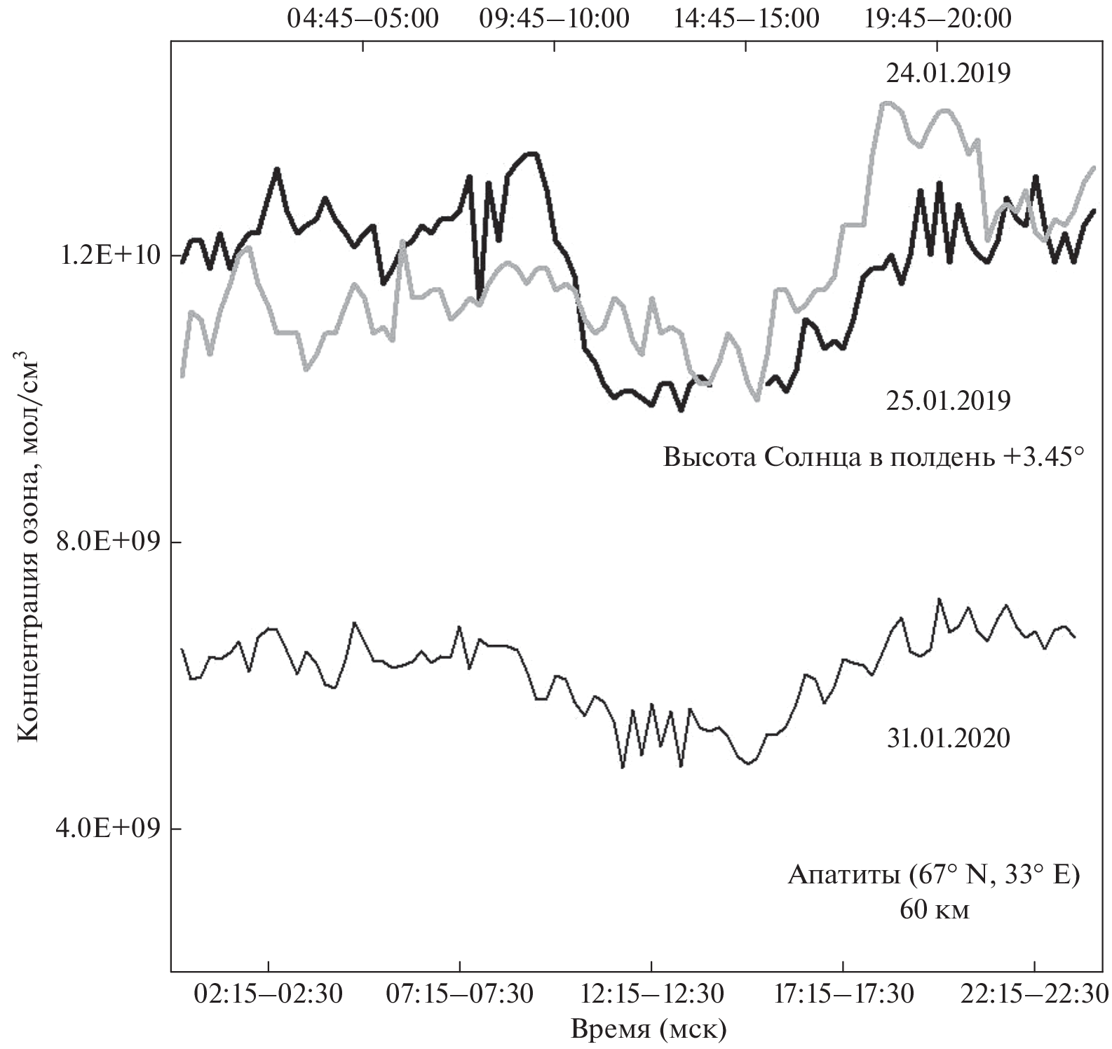 same time, the scale of mesospheric ozone variability (60 km) over Apatity is comparable or exceeds the