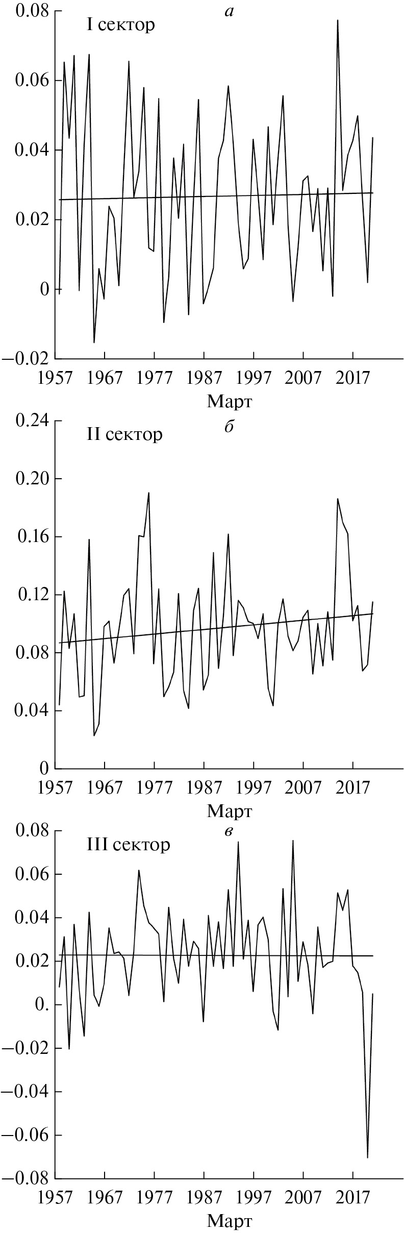 Таблица 1. Уровни значимости трендов в каждом секторе для исследуемых месяцев за период с 1958 по 2021 гг.