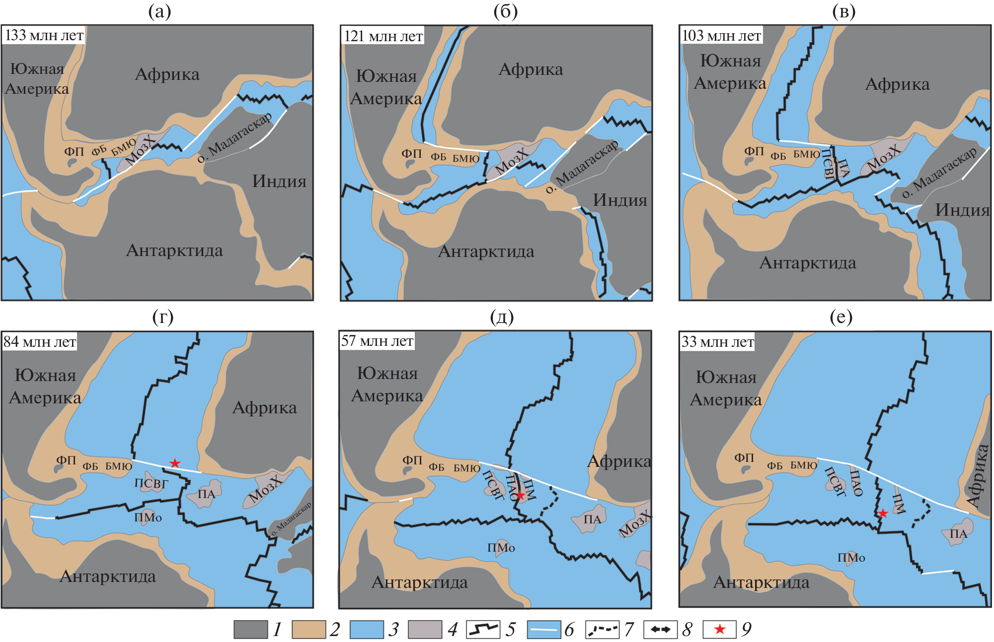 - Mueller C.O., Jokat W. The initial Gondwana break-up: A synthesis based on new potential field data of the Africa-Antarctica Corridor // Tectonophysics. 2019. Vol. 750. P. 301‒328.