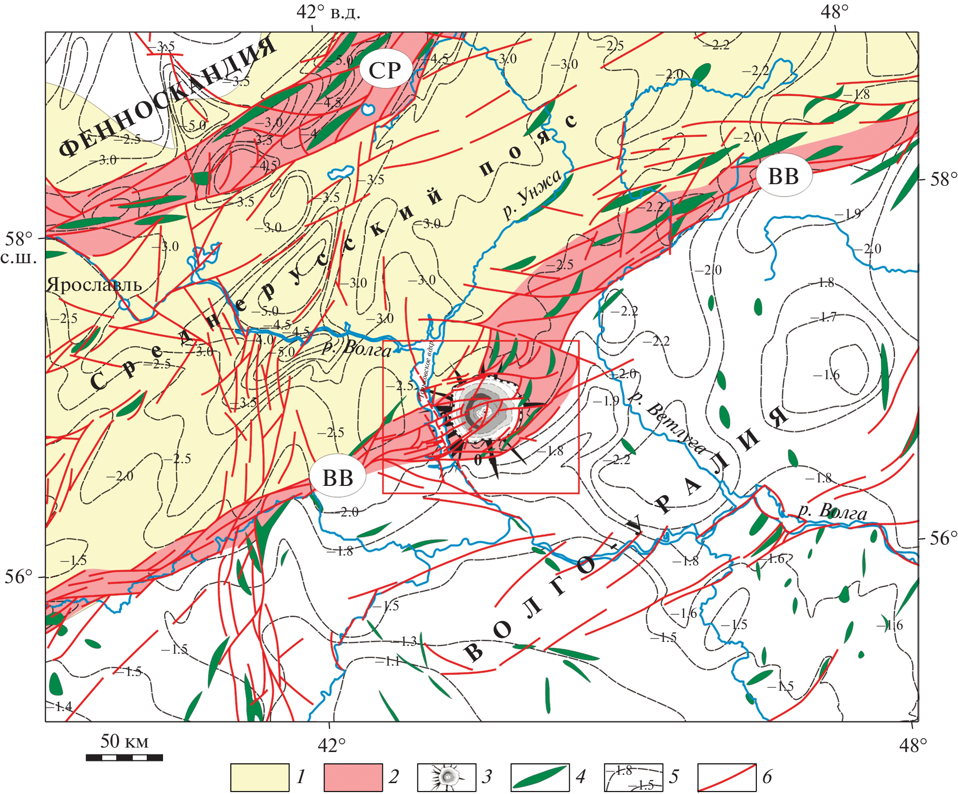 10. Колодяжный С.Ю. Структурные парагенезы Владимирско-Вятской зоны дислокаций и положение Пучеж-Катункского кратера (Восточно-Европейская платформа) // Геотектоника. 2014. № 2. С. 23‒41.