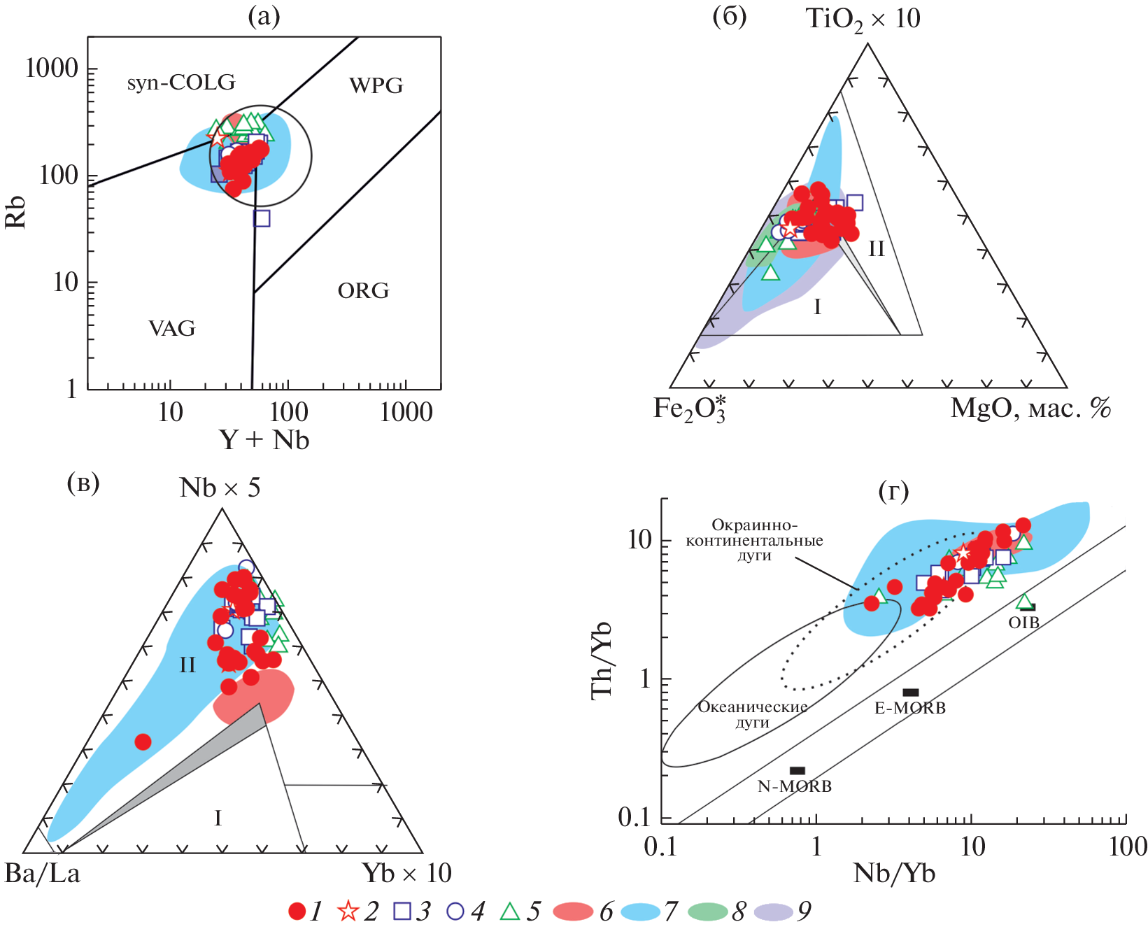 - Pearce J.A., Harris N.B.W., Tindle A.G. Trace element discrimination diagrams for the tectonic interpretation of granitic rocks // J. Petrol. 1984. Vol. 25. № 4. P. 956–983.