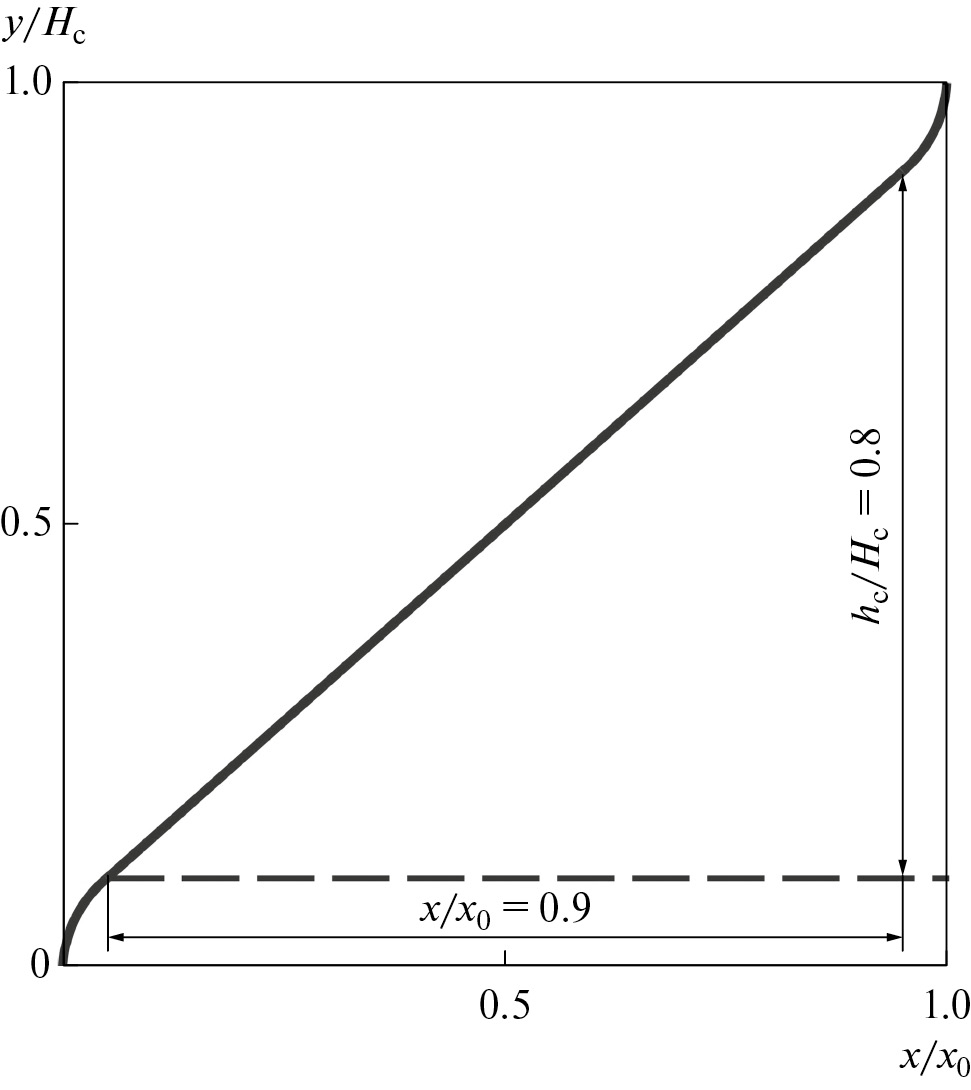 где h – толщина слоя при x = 0, hx0 – толщина слоя при значении горизонтальной координаты x = x0 (см. рис. 2).