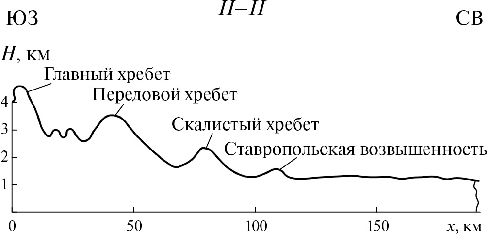 Представлен рельеф склона поднятия северо-западного Кавказа в сечении II‒II [23] (рис. 9).